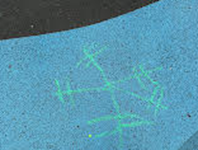 Chalk and water painted snowflakes.
