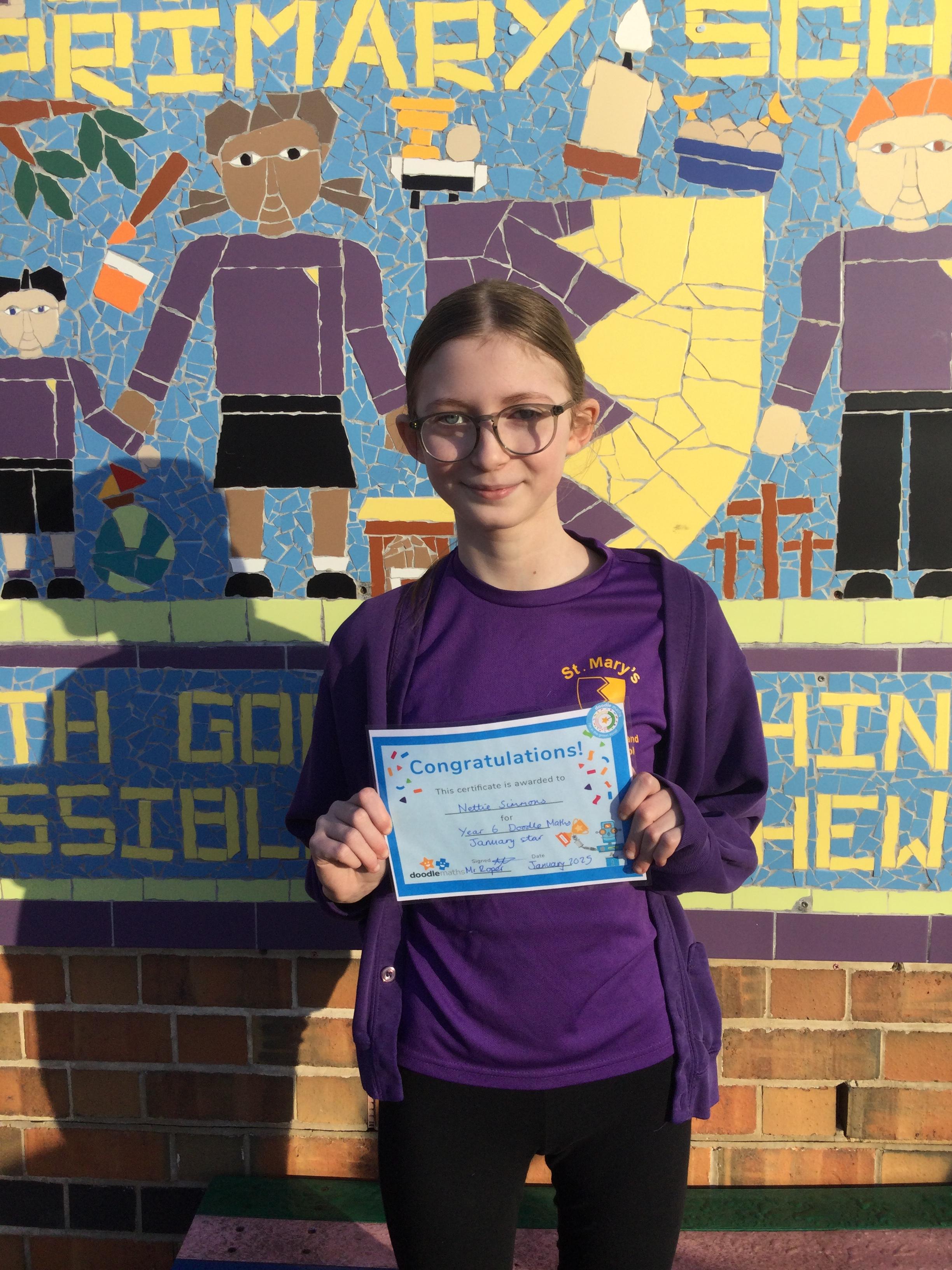 St Mary’s Doodle Maths star of the month and earning over 1,700 Doodle stars! Nettie