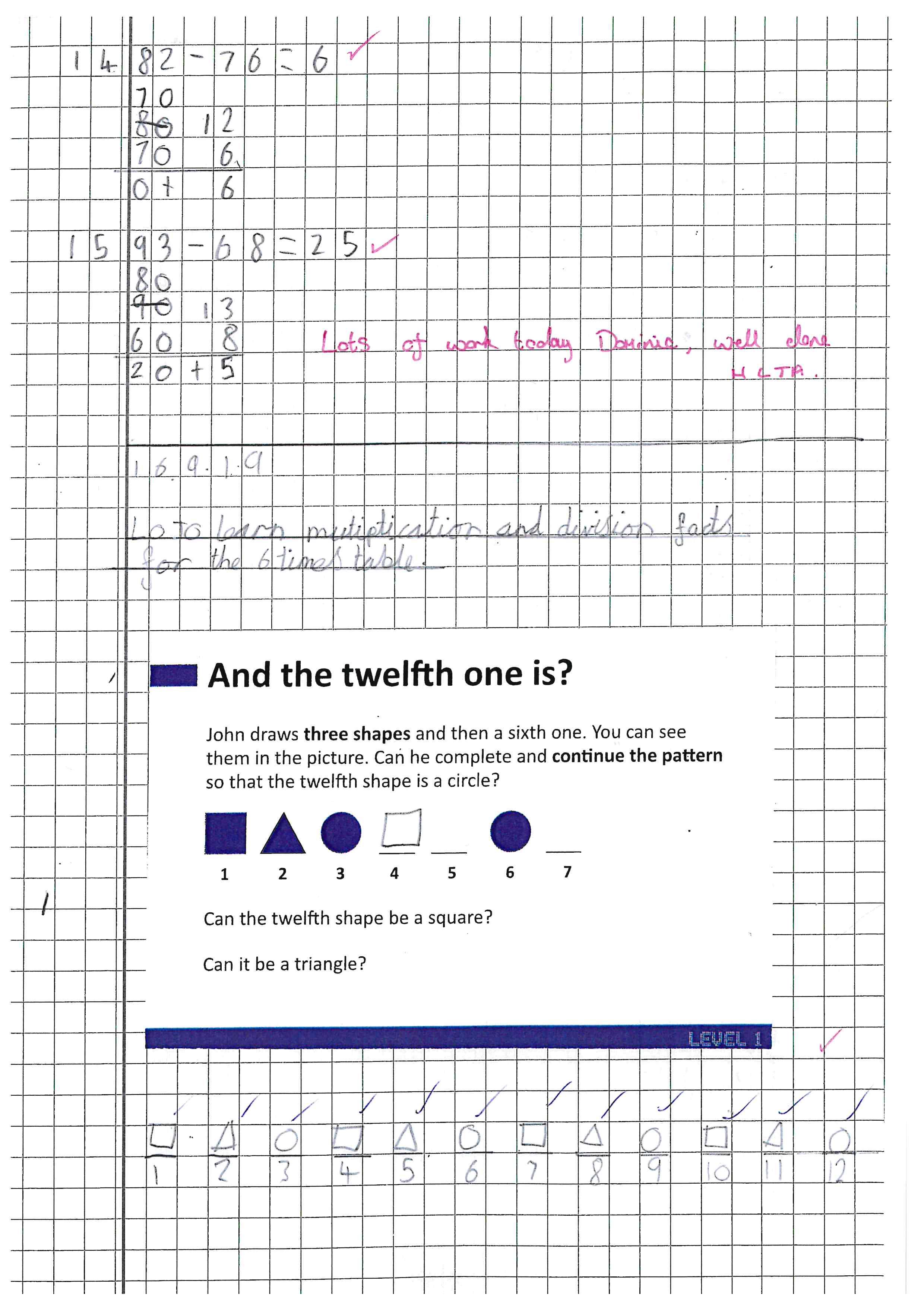 St Mary’s Doodle Maths star of the month (again) is Nettie