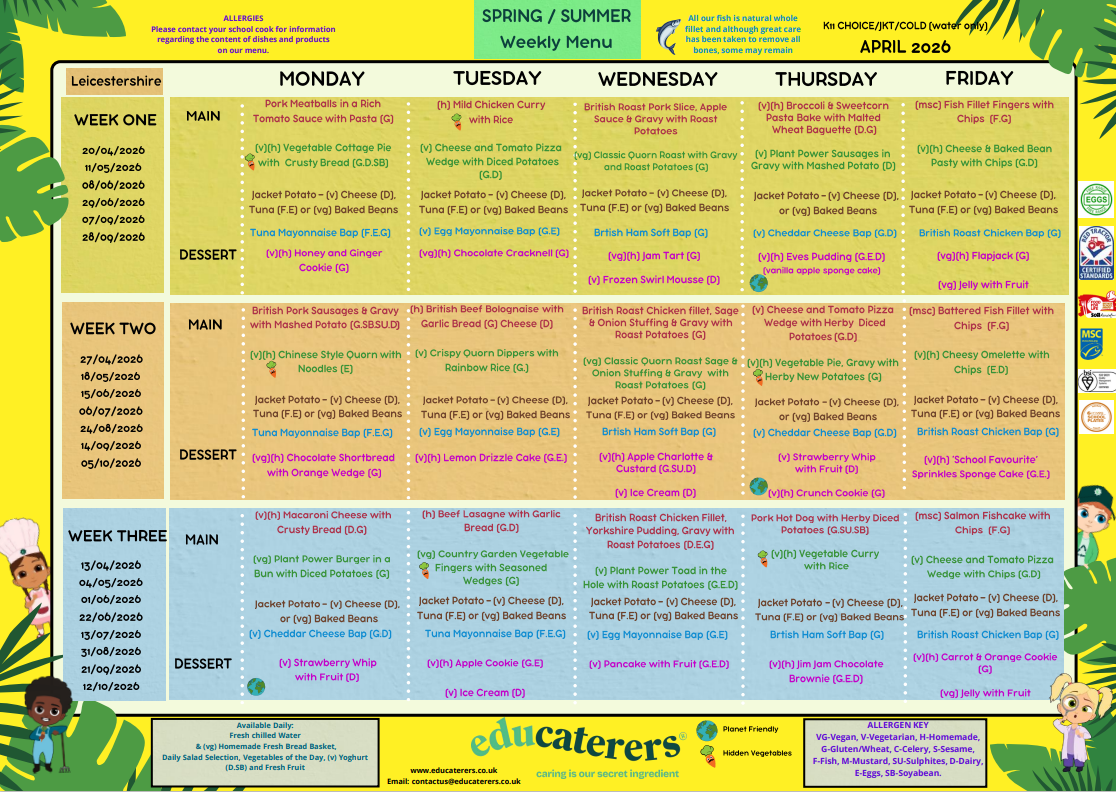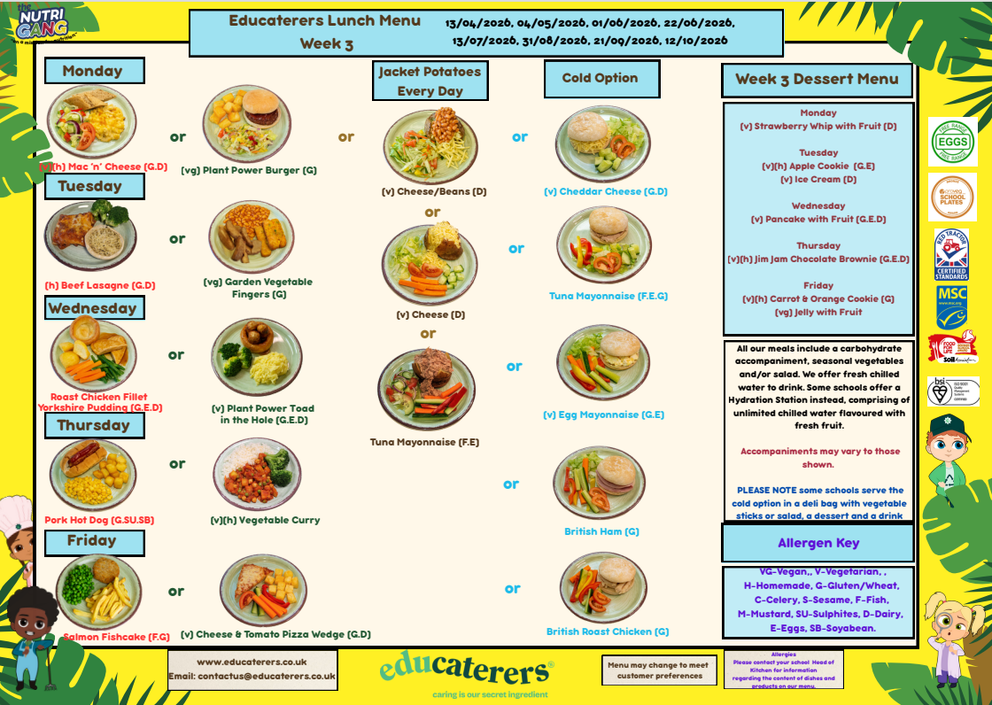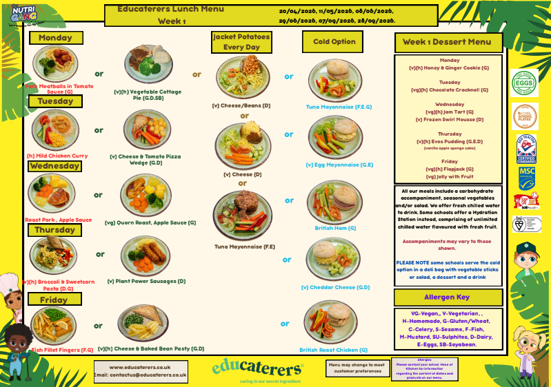 With effect from 13th April 2026 school dinners will increase to £3.20 per day or £16.00 per week. (Please ensure payment is made in advance).