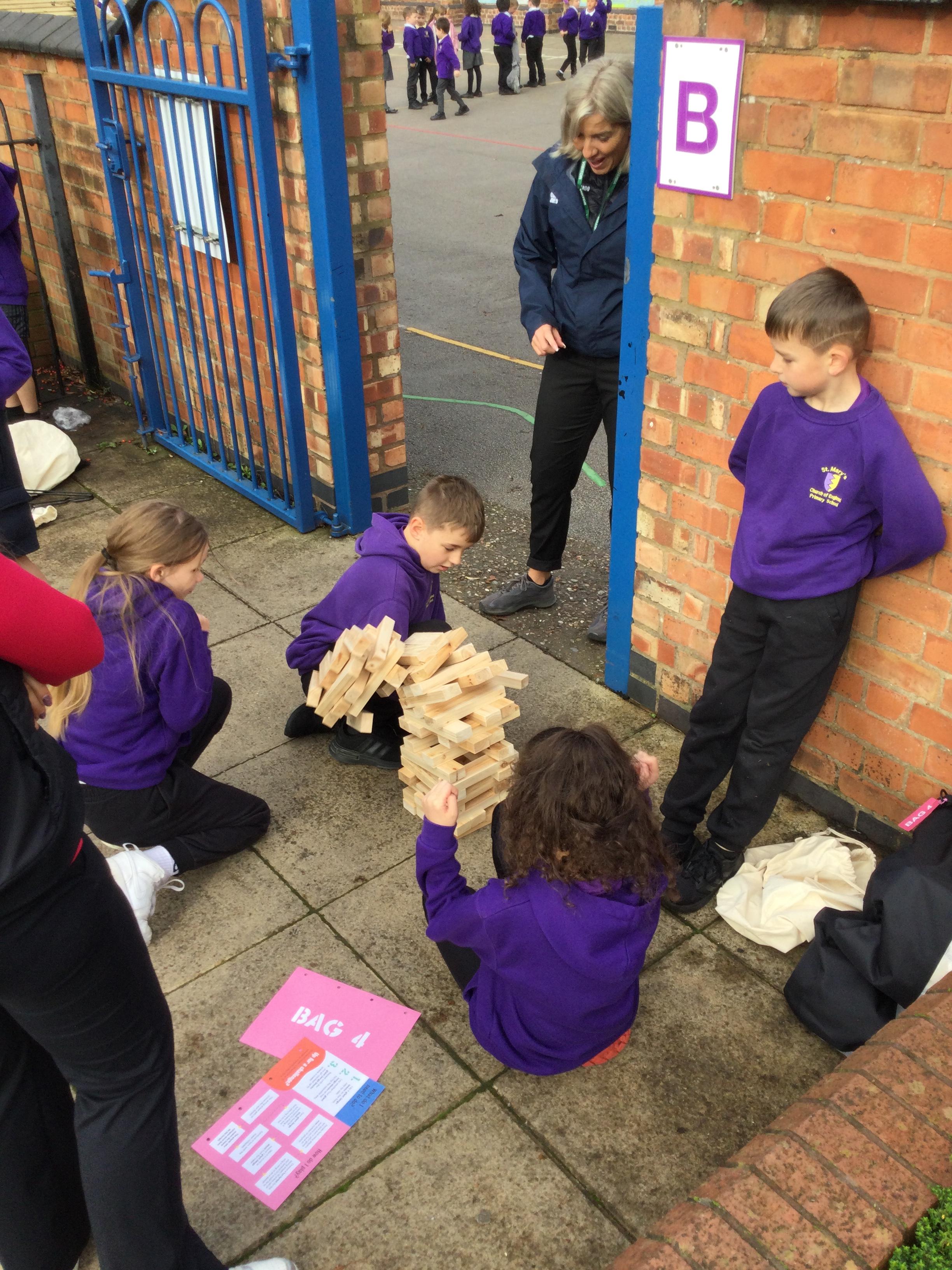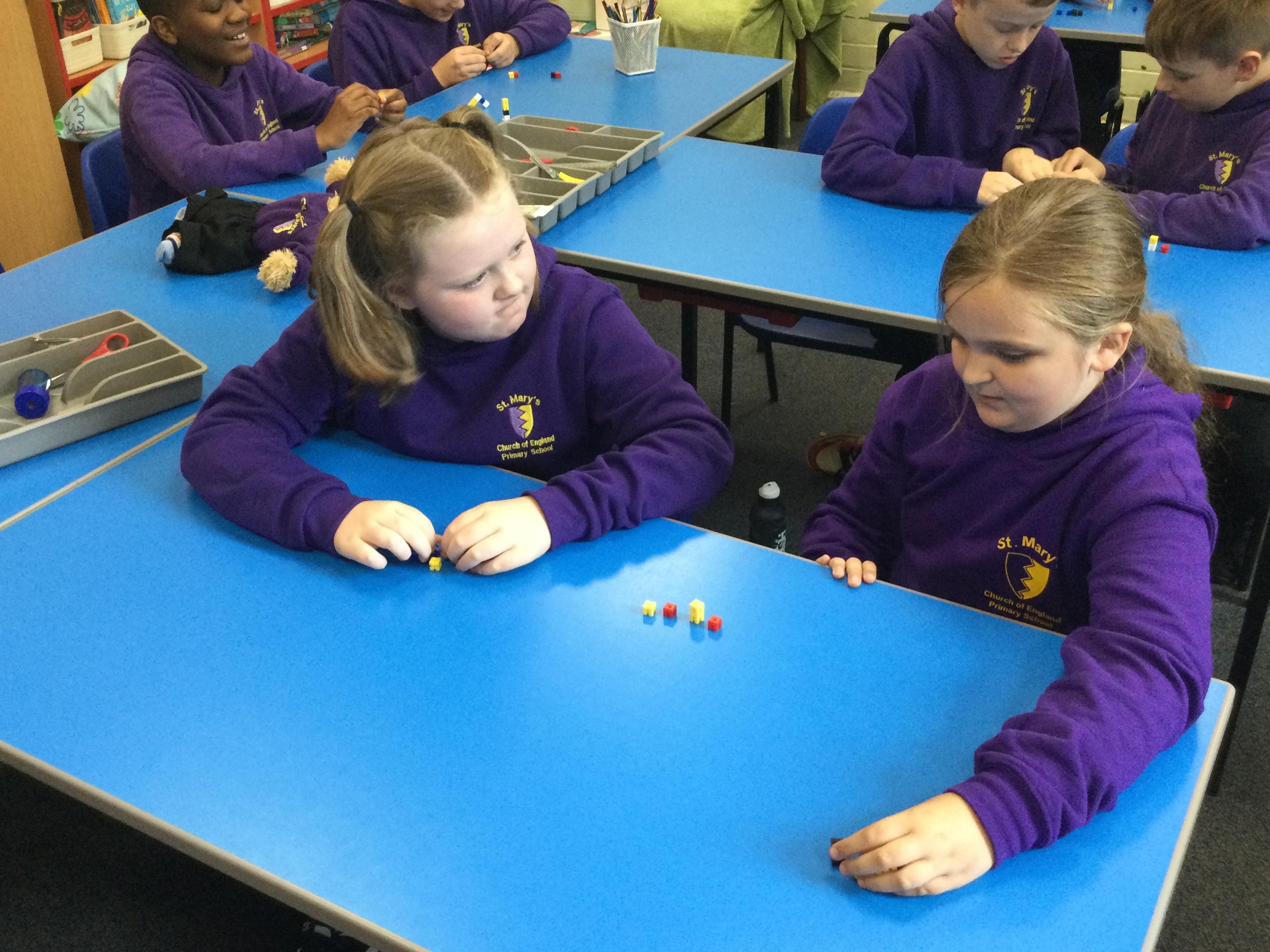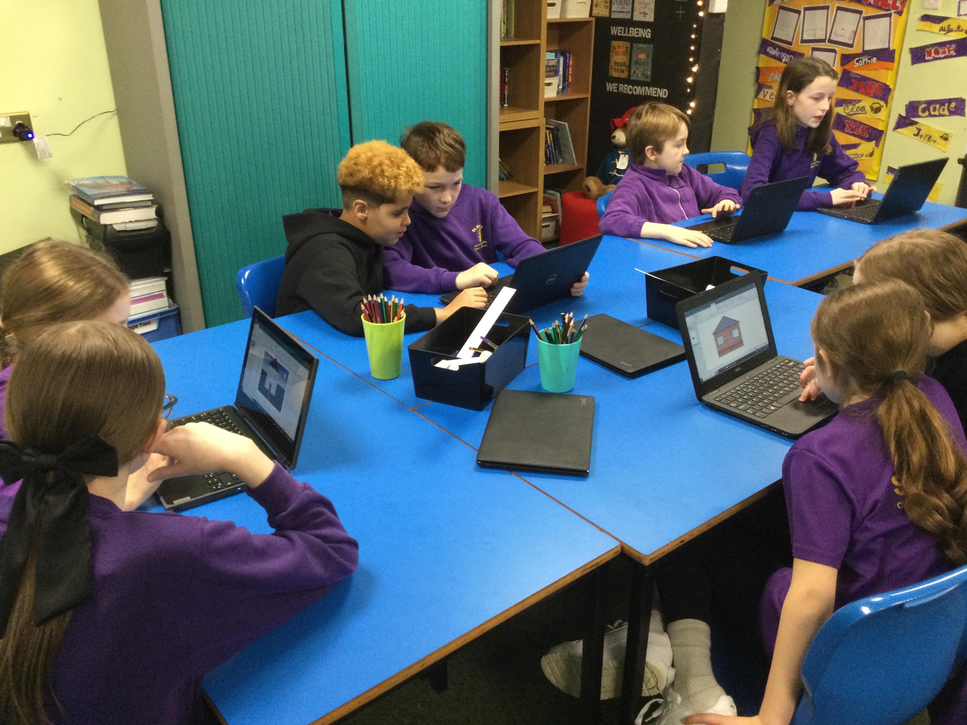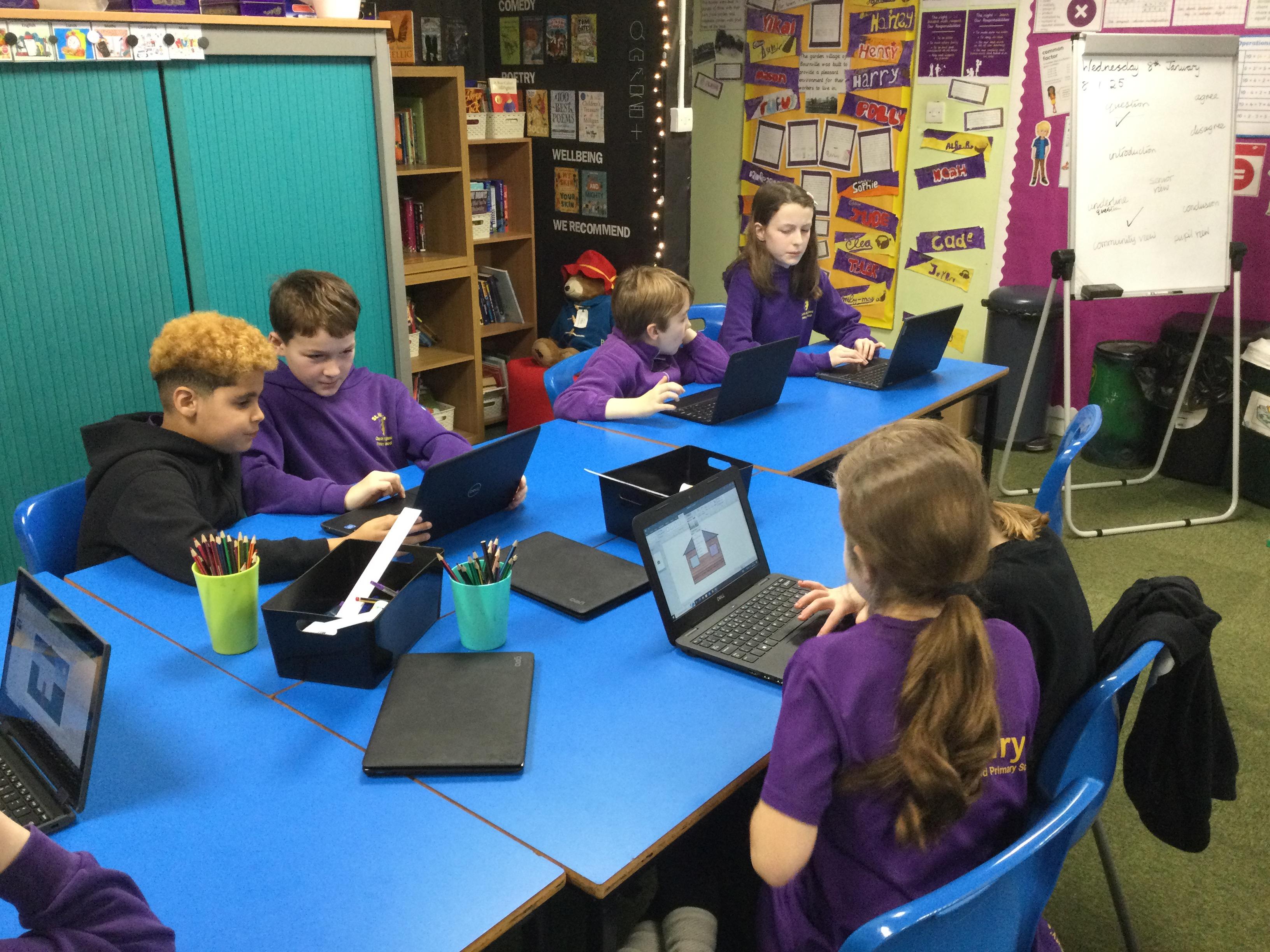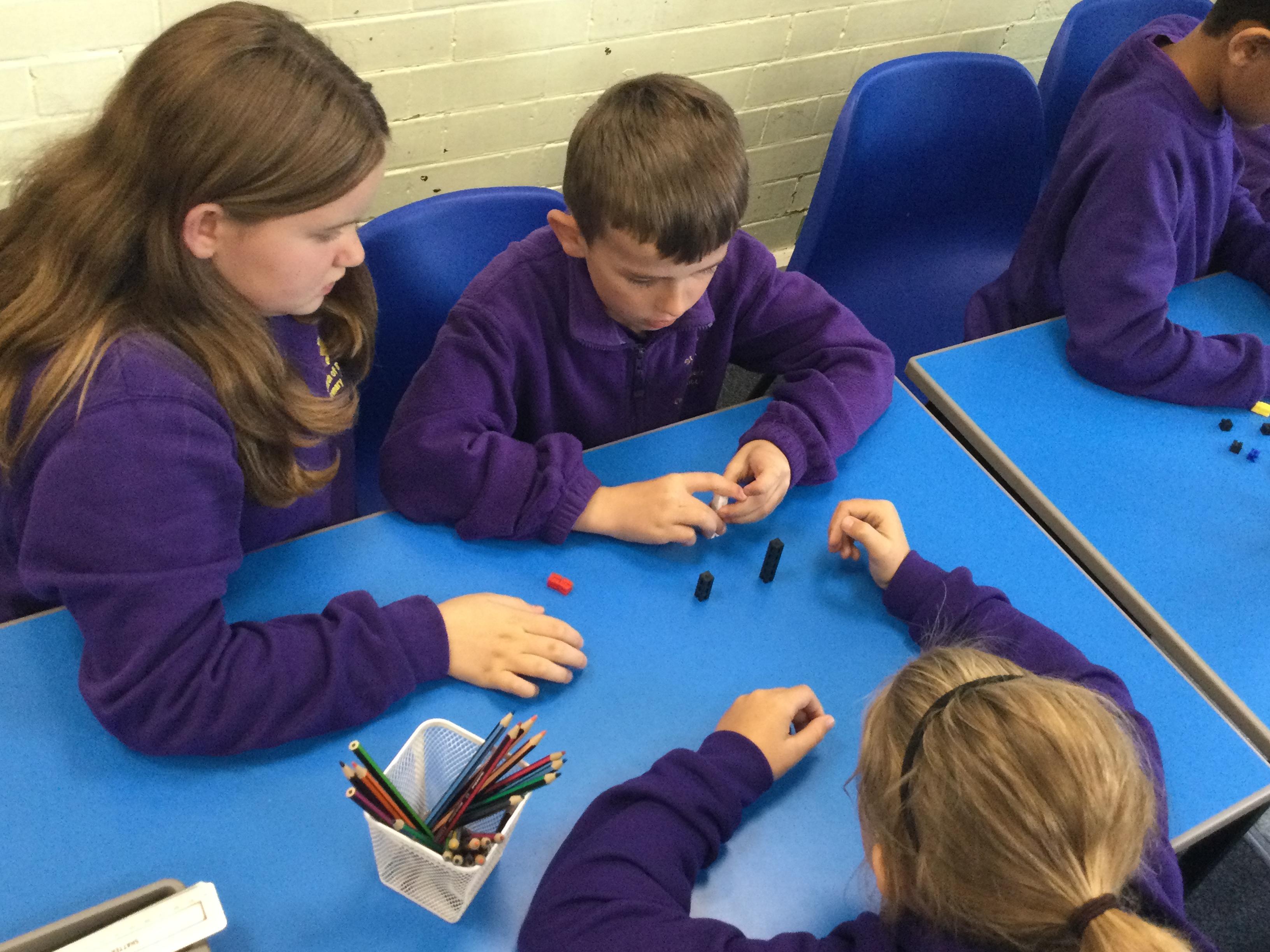Children have been learning how computers send messages to each other through a network. The children sent 'packets' via the routers (which were the children) from one machine to another. The children were only allowed to hold one 'packet' at a time.
