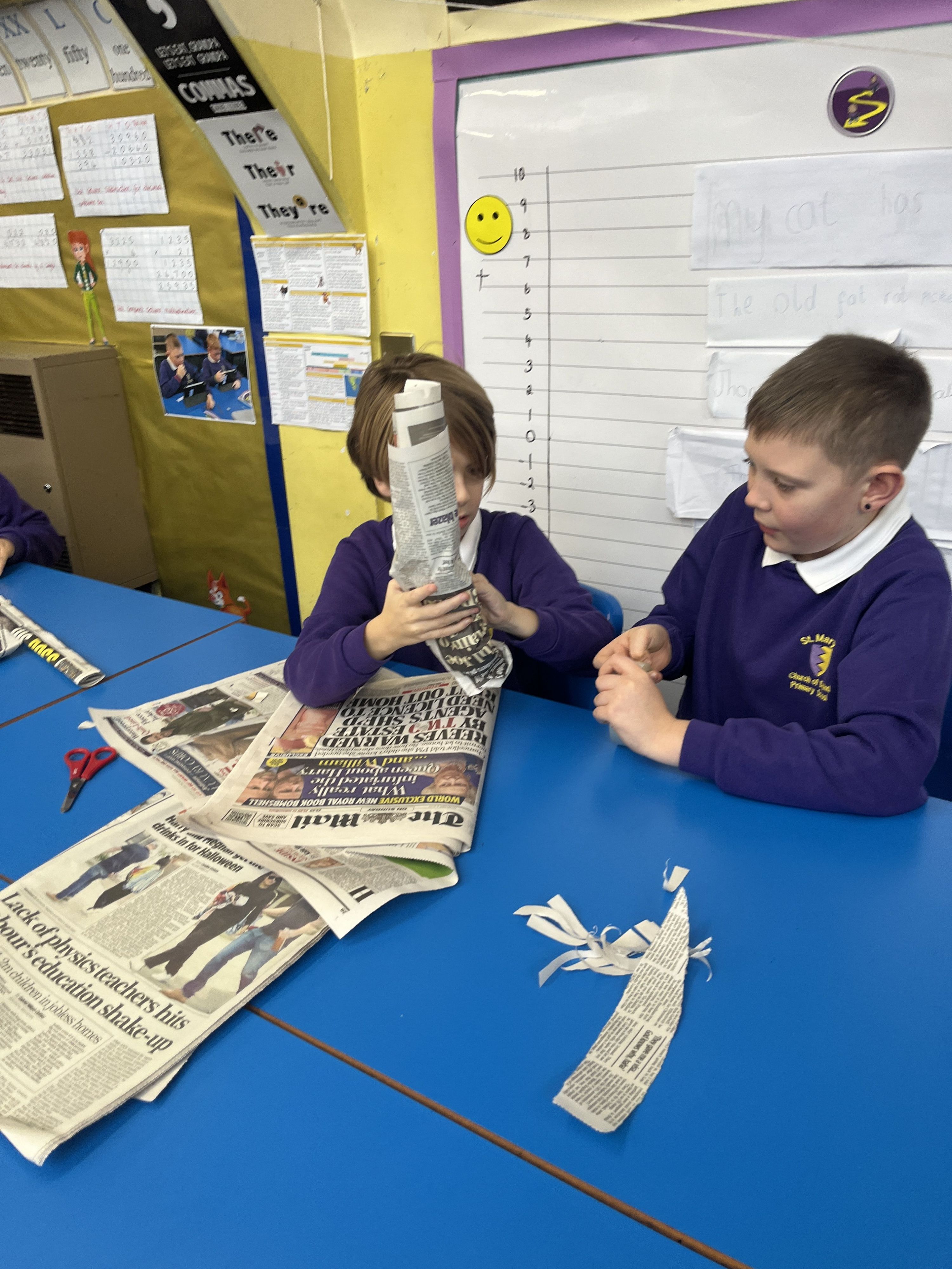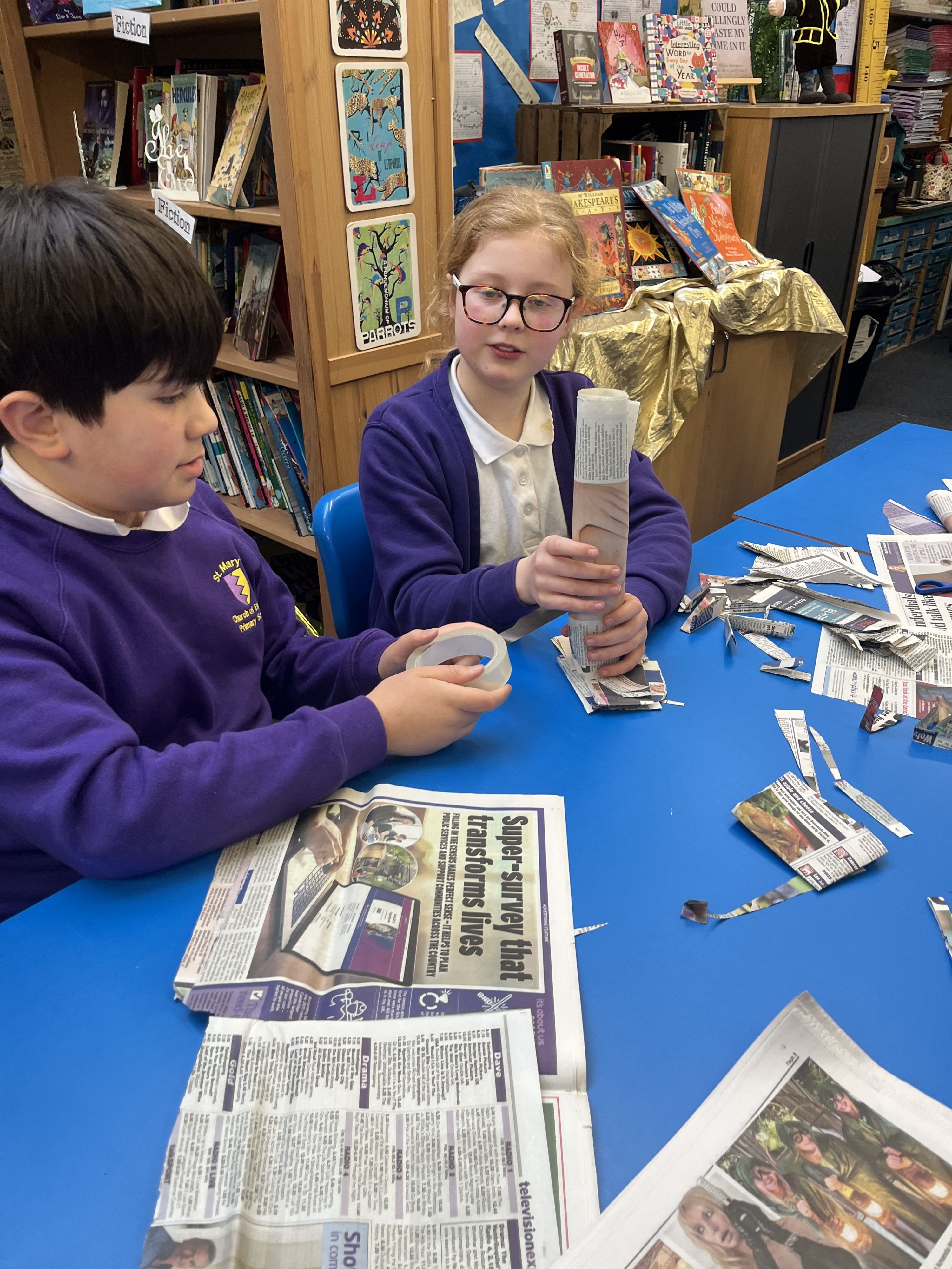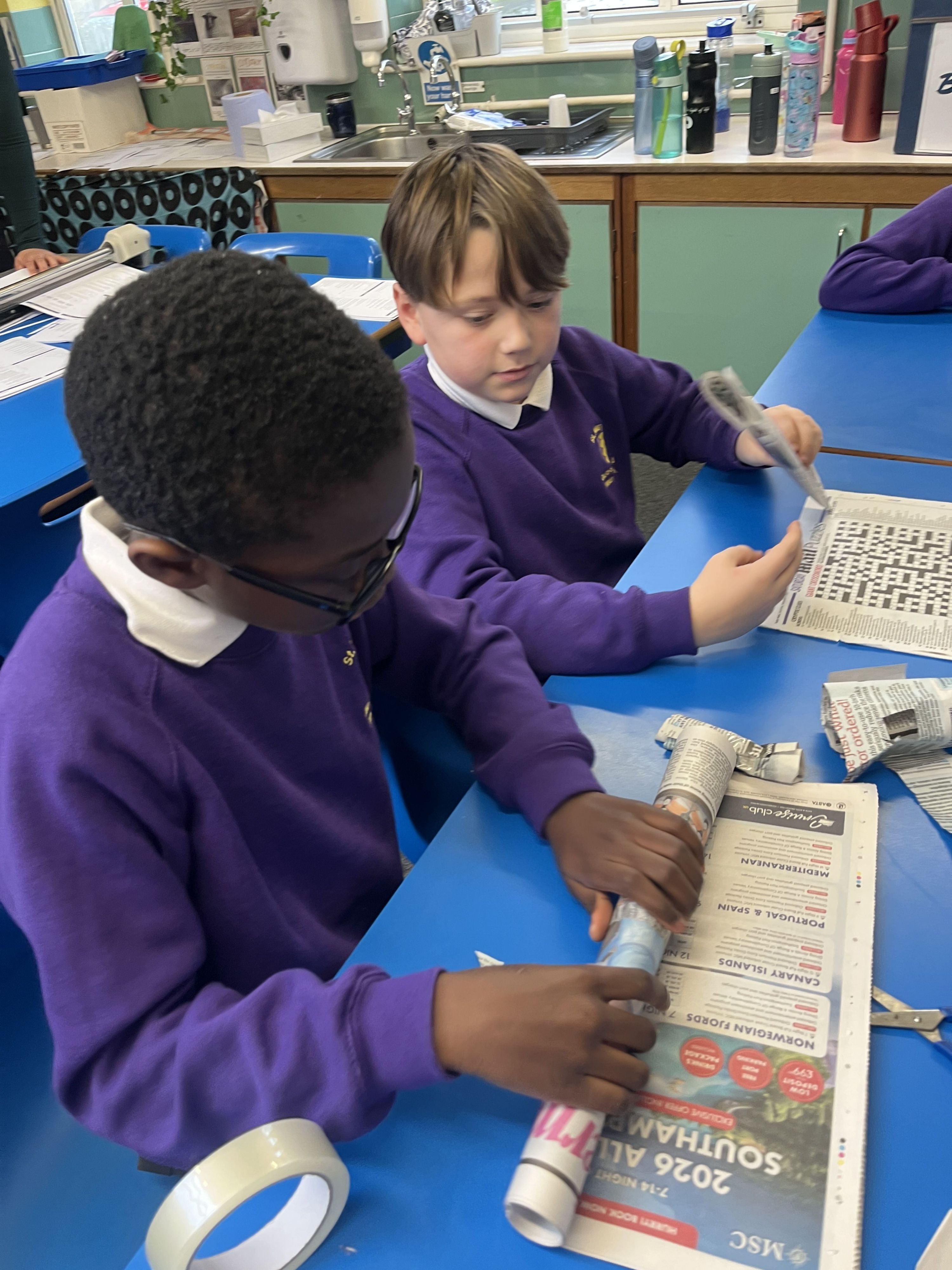 On 12th January, some of Years 5/6 have been busy making the tallest tower possible from a newspaper and tape.