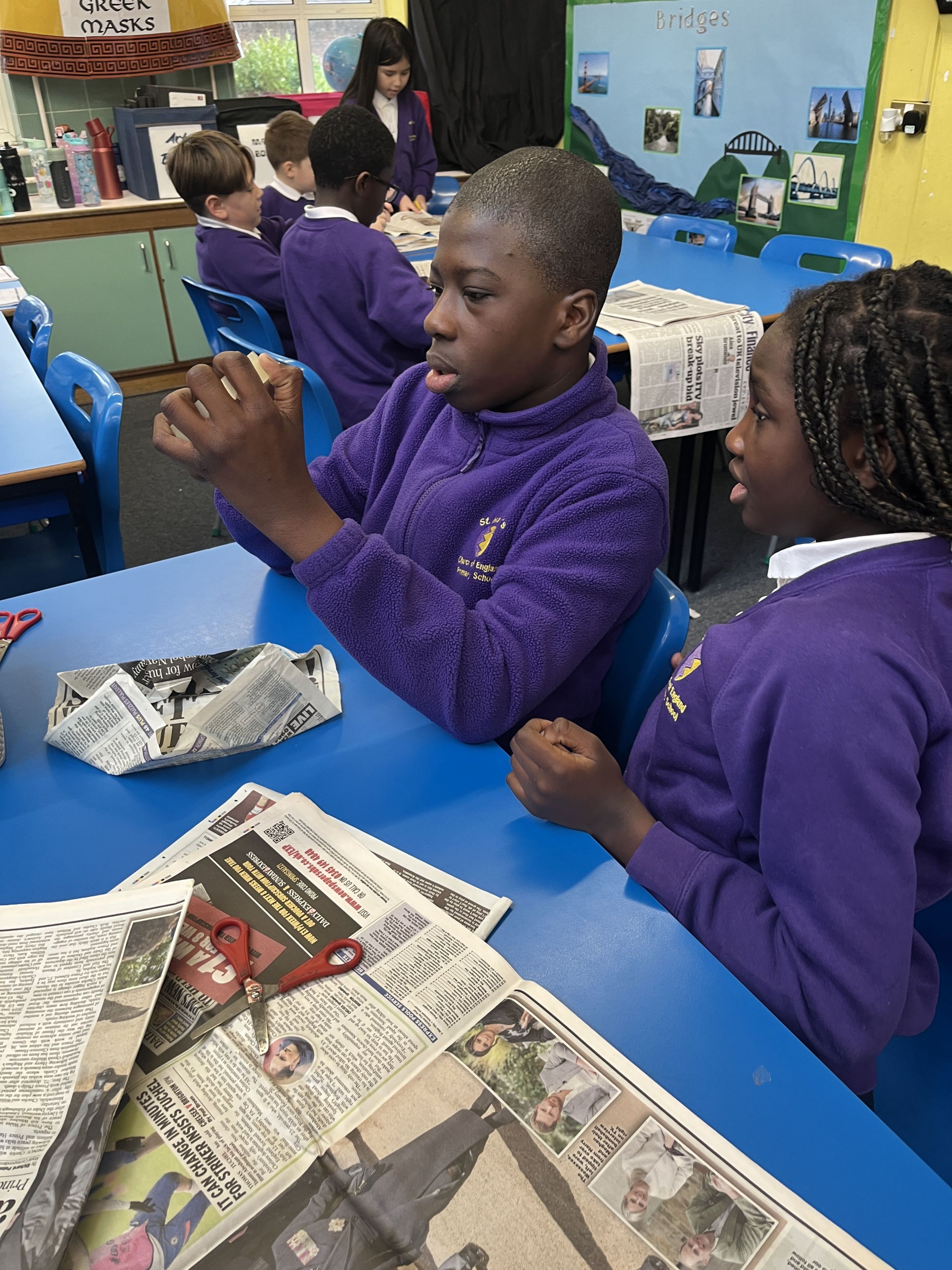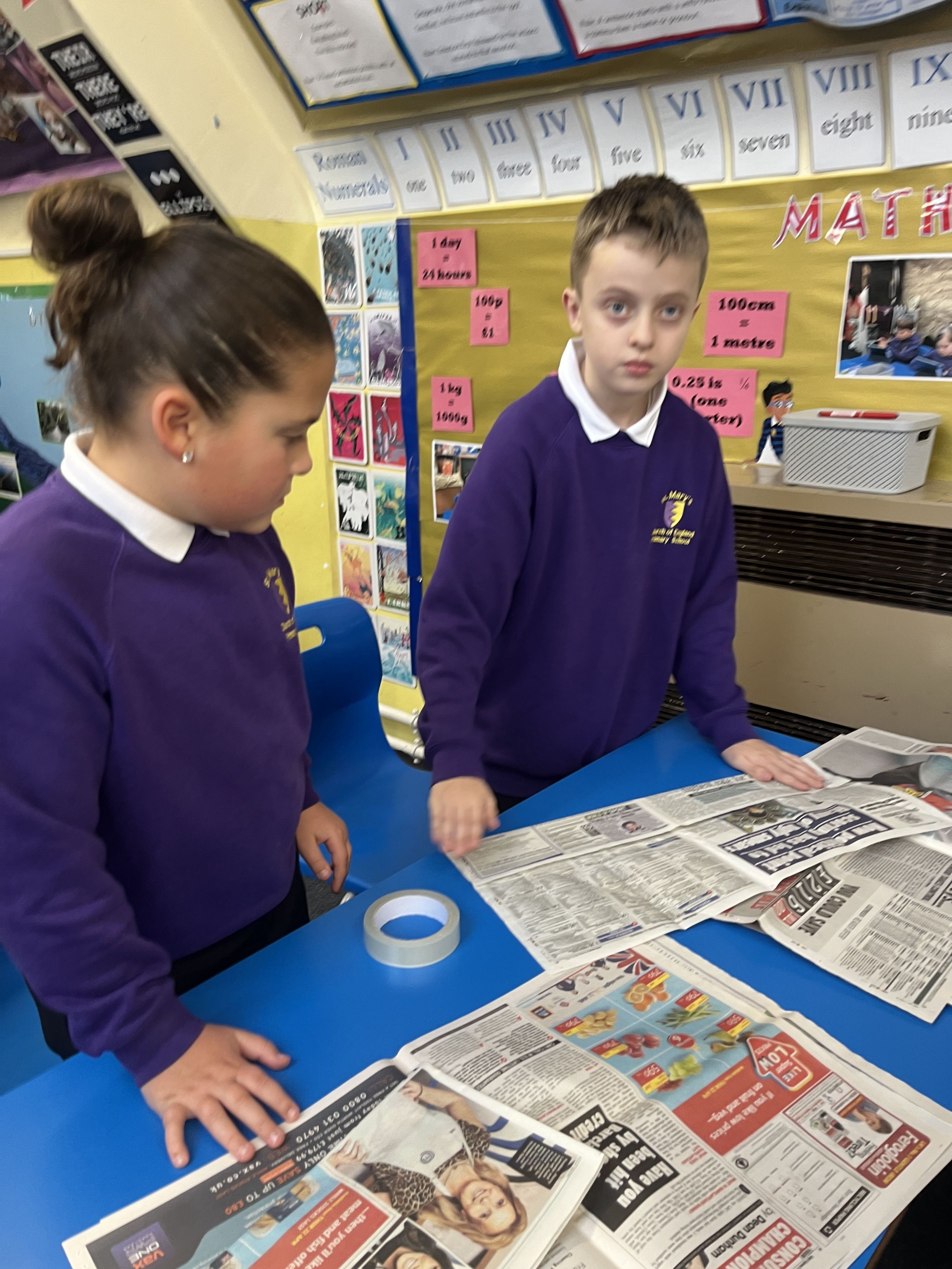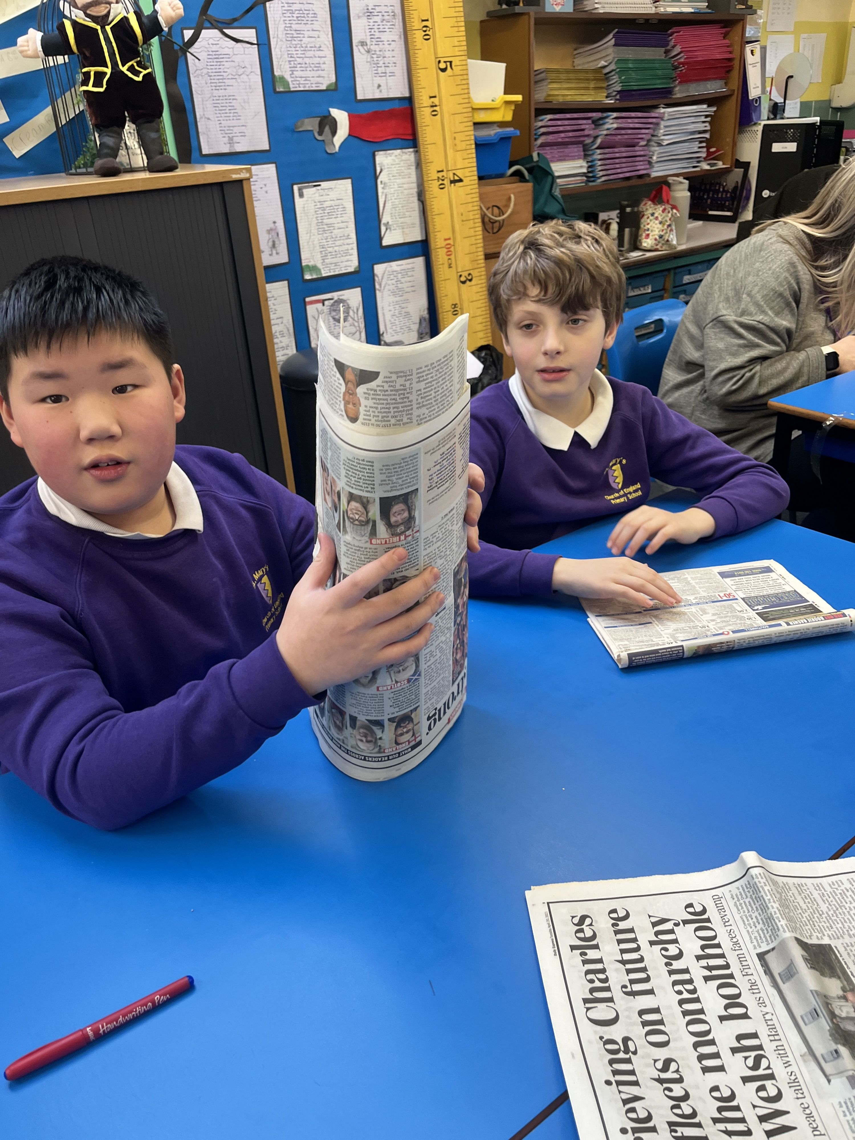 On 12th January, some of Years 5/6 have been busy making the tallest tower possible from a newspaper and tape.