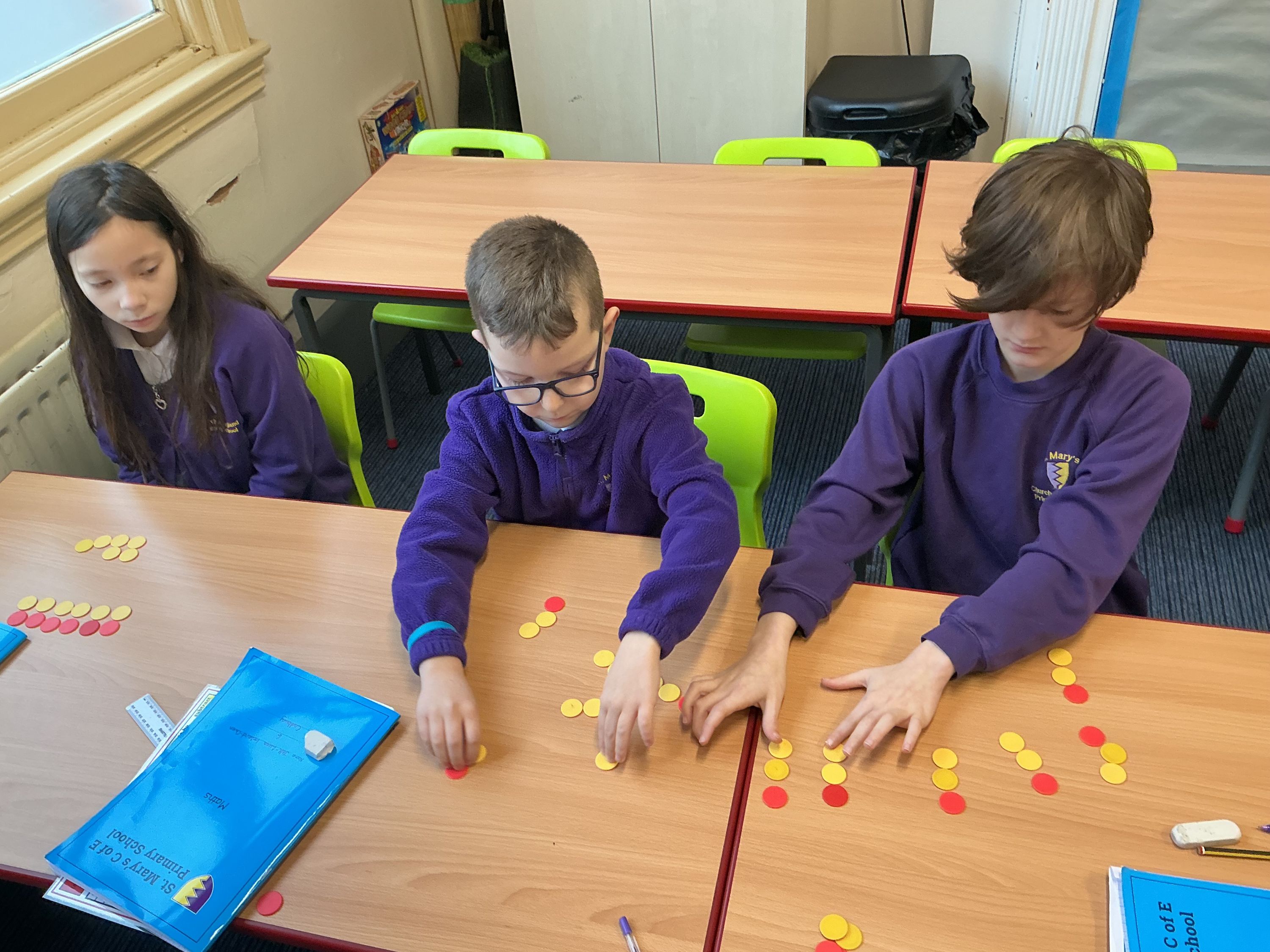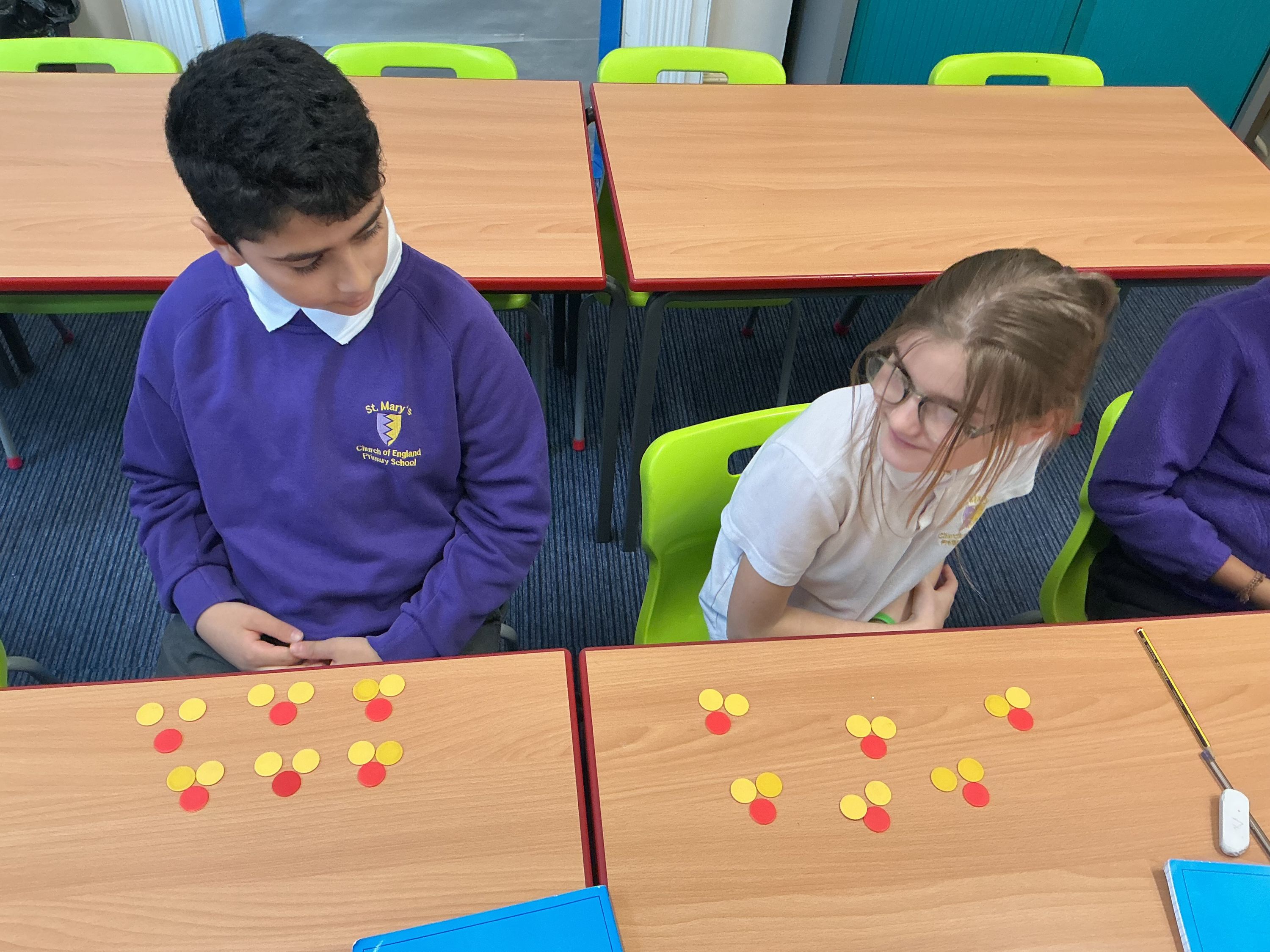 On 26th January, in year 6, we were using counters to begin to understand how to use ratio in maths to compare 2 quantities. How many yellow counters were there compared to red counters. The counters really helped to work this out.