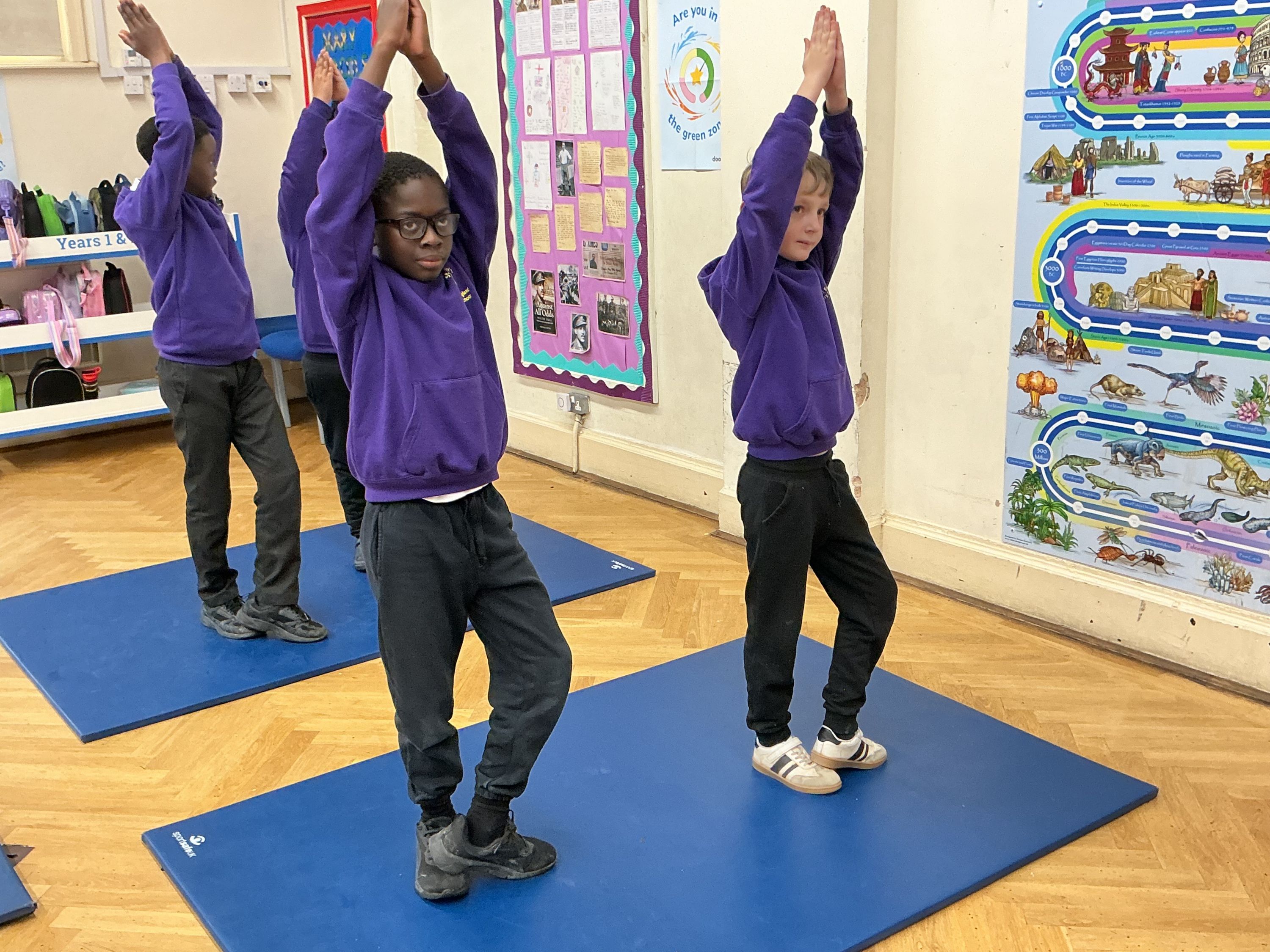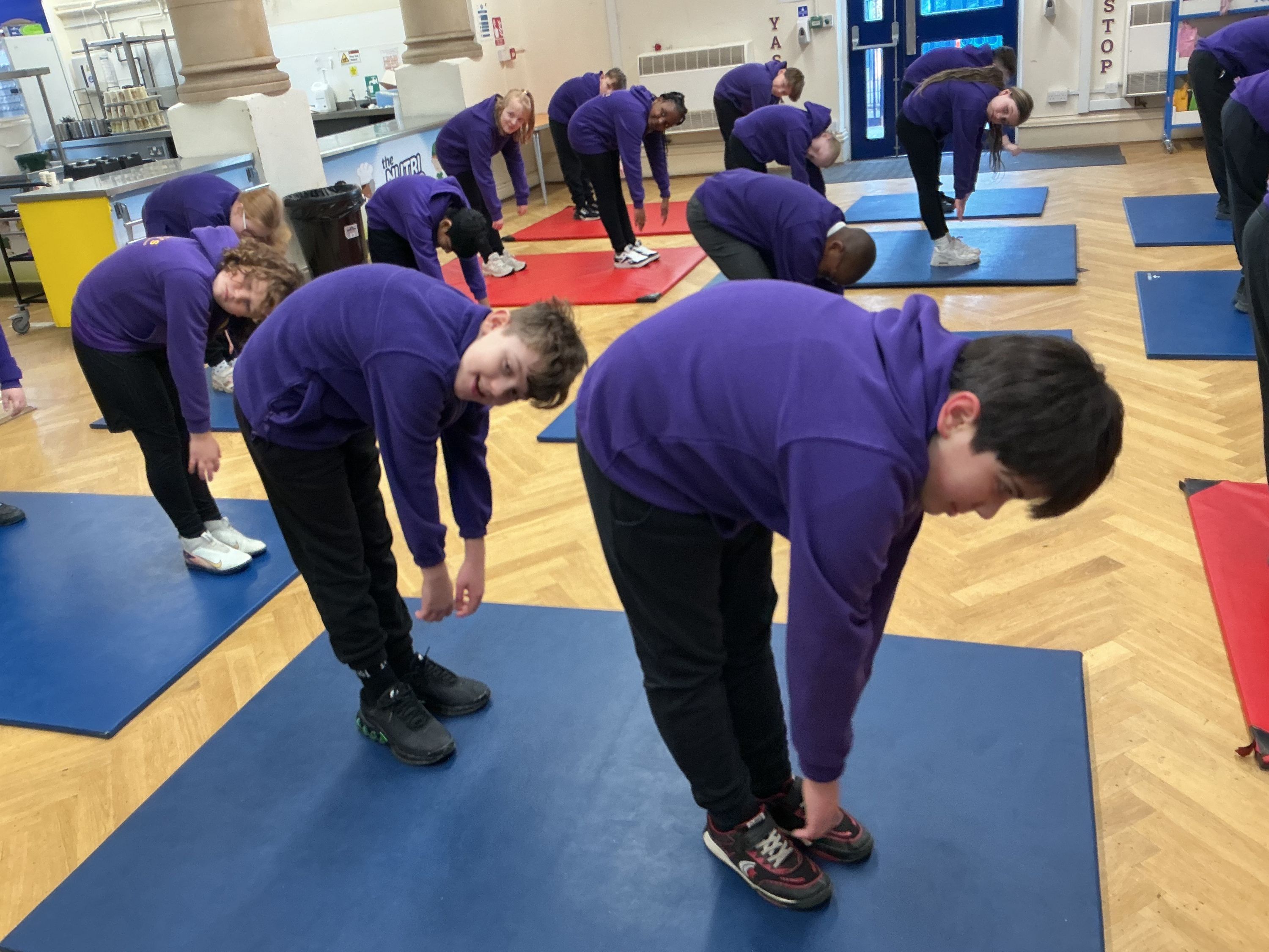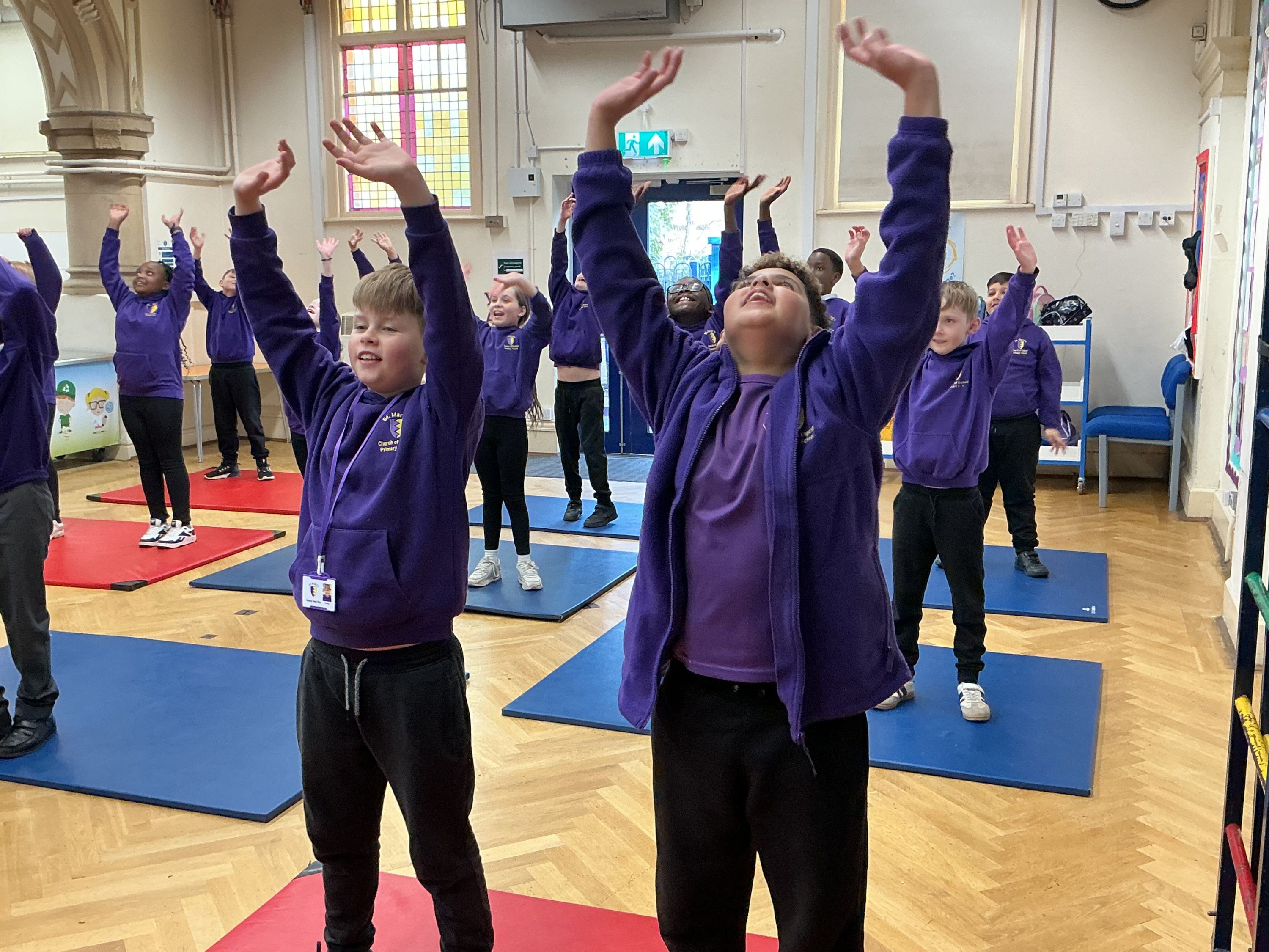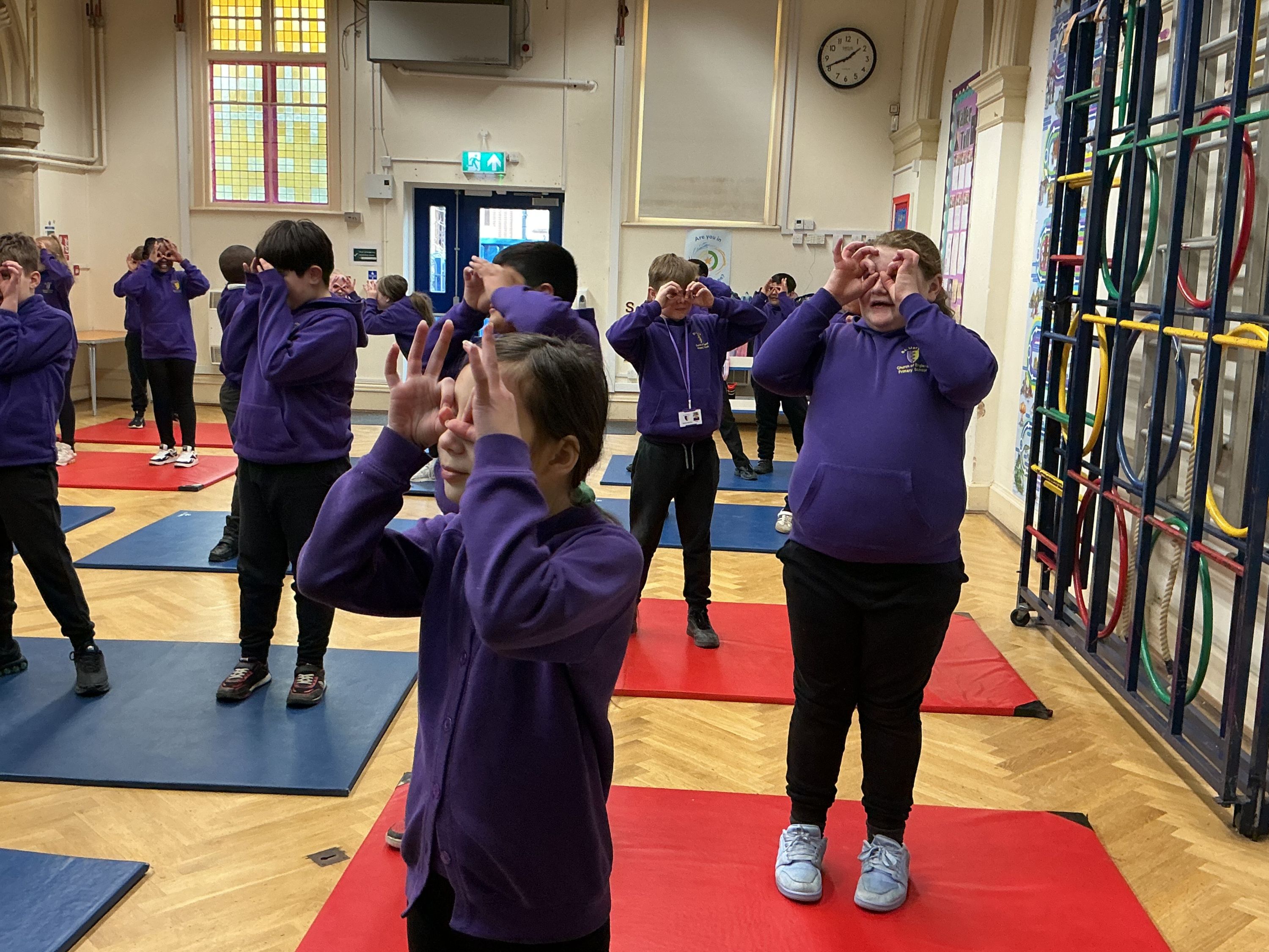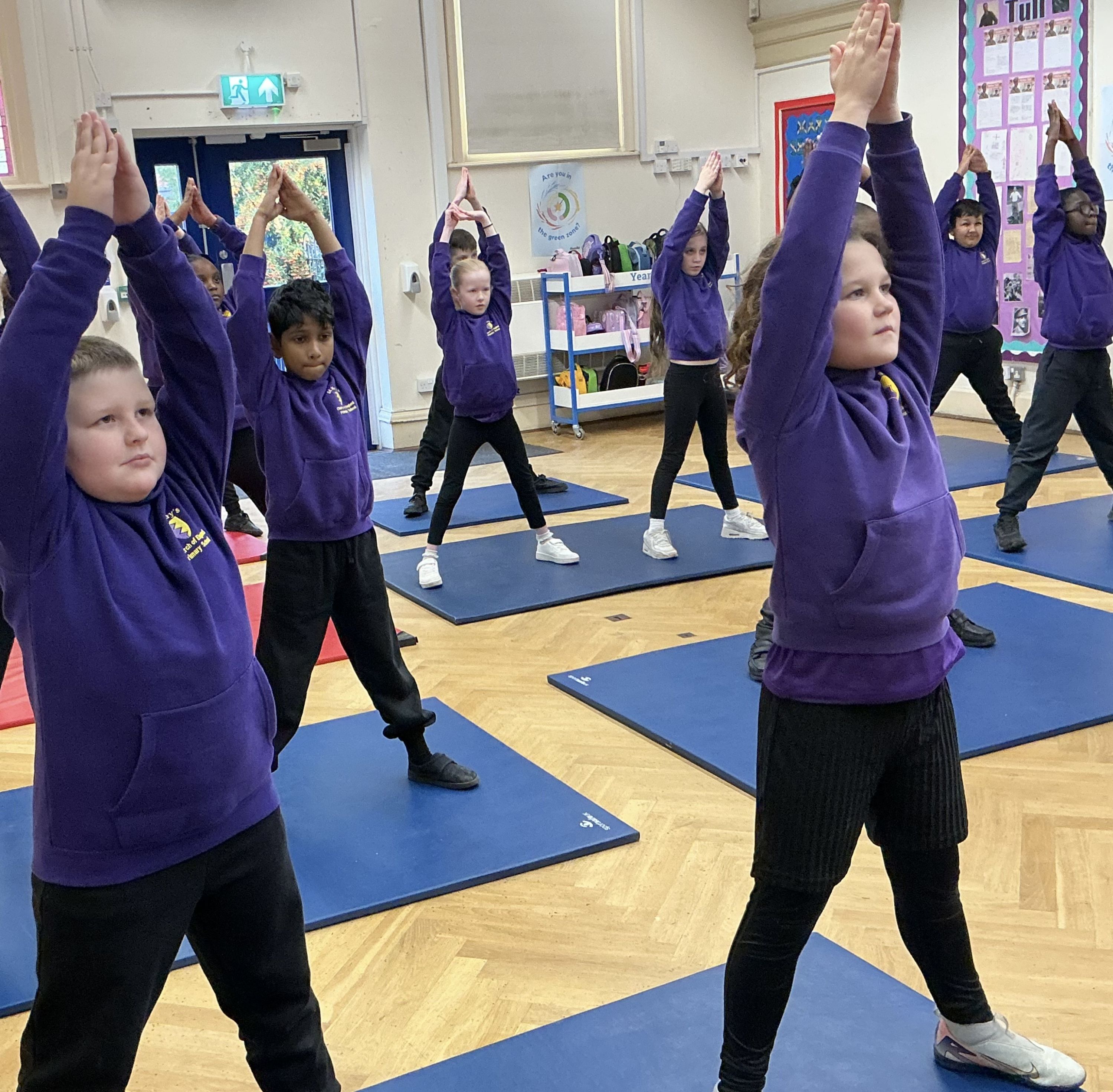 Year 5/6 enjoying taking part in Minecraft yoga.