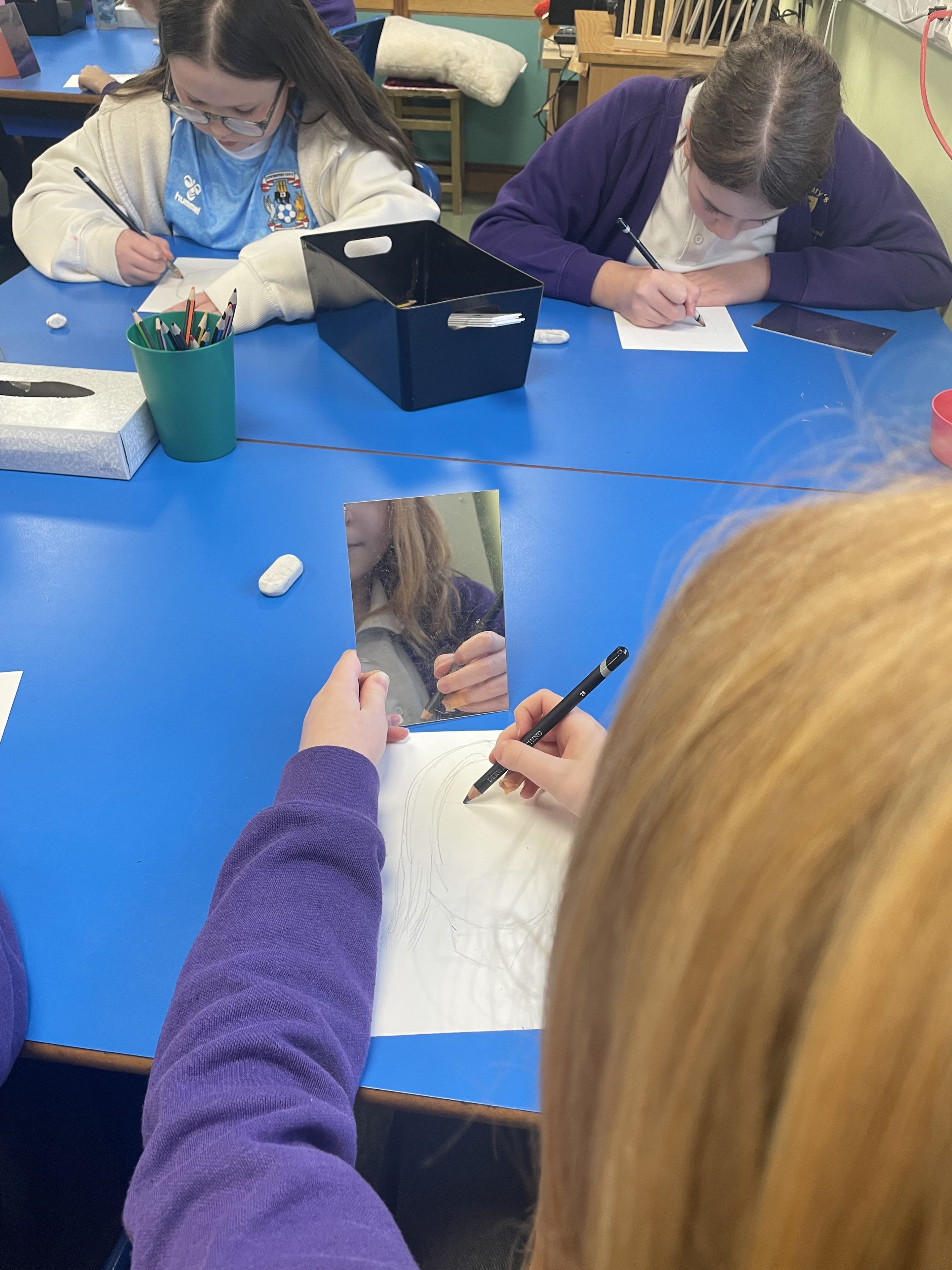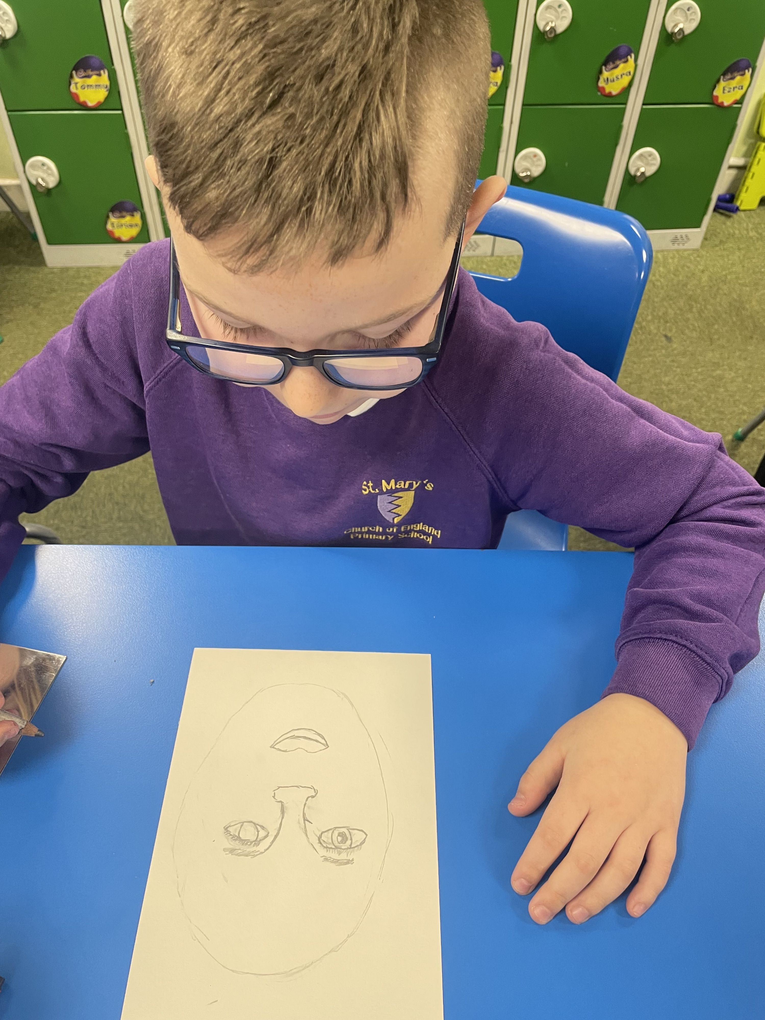 Cadbury class doing some self portraits this week.