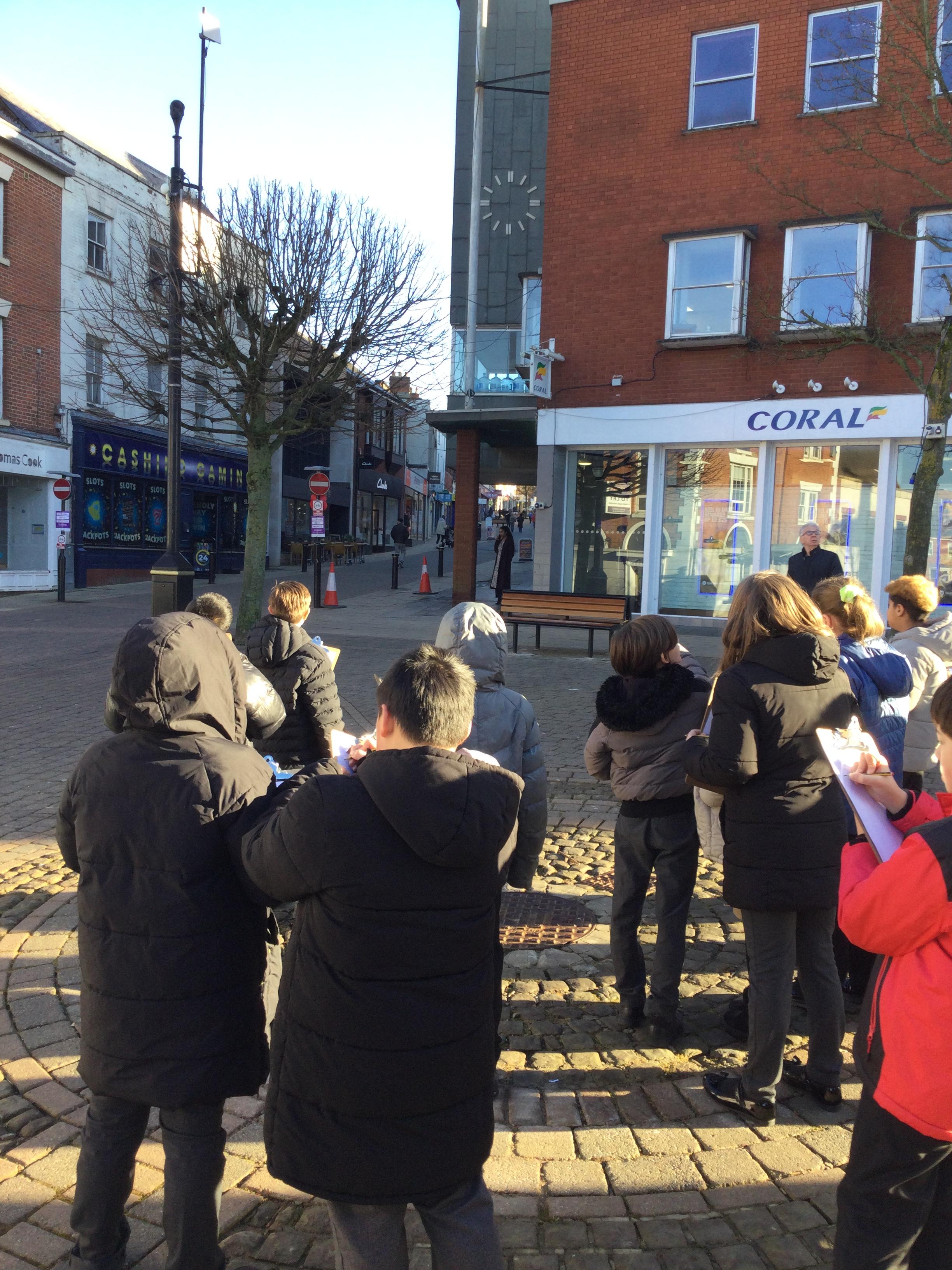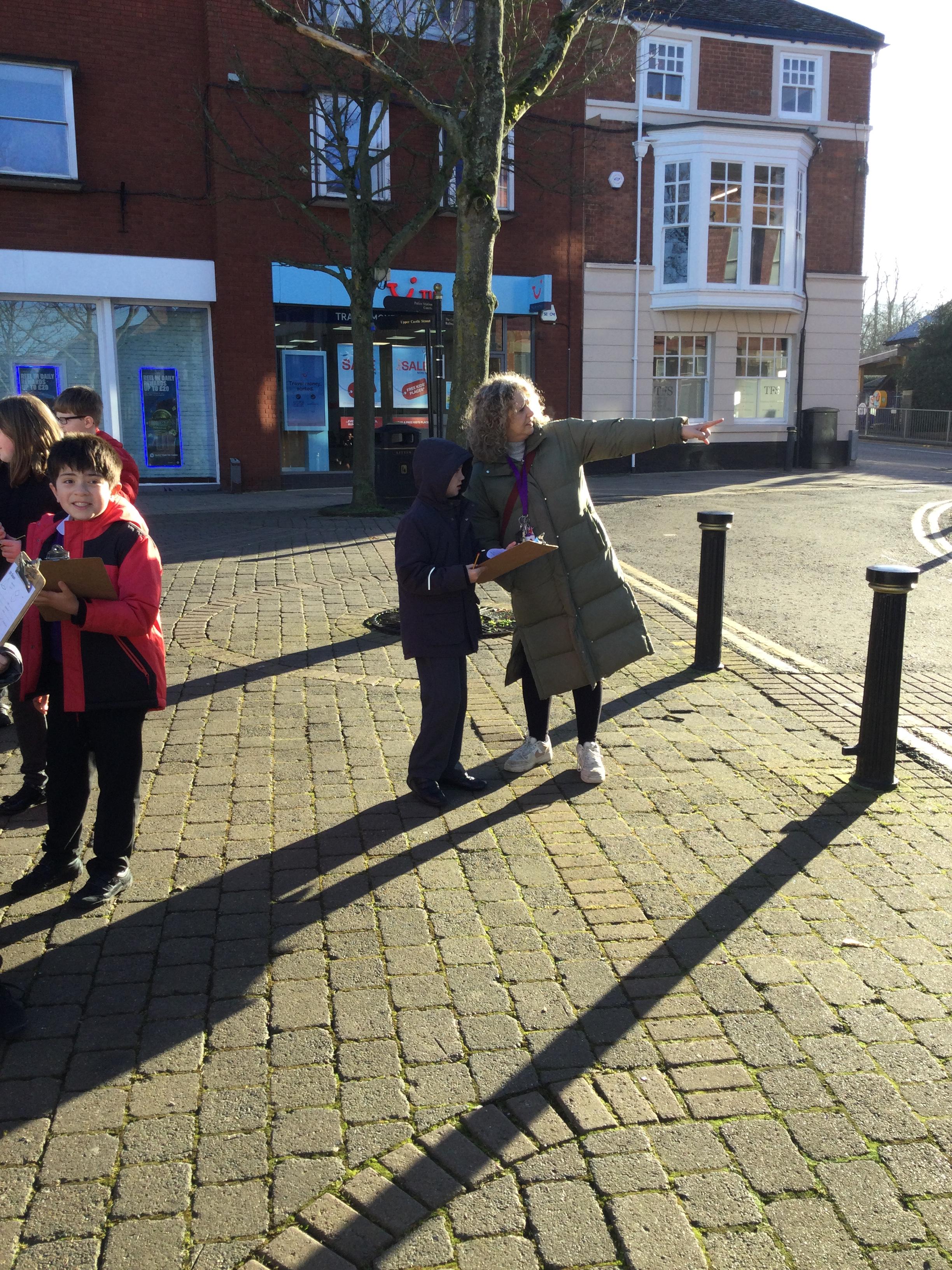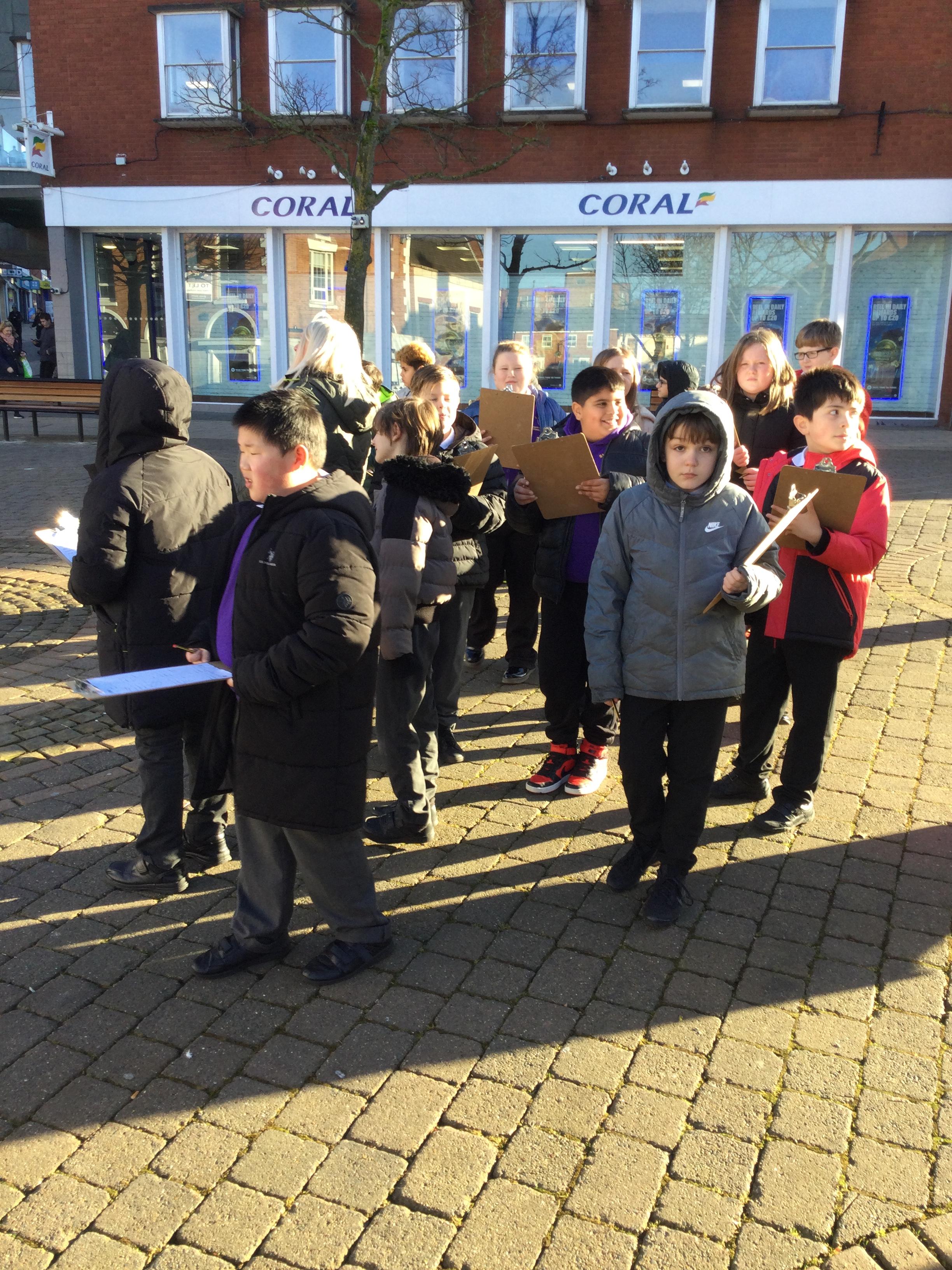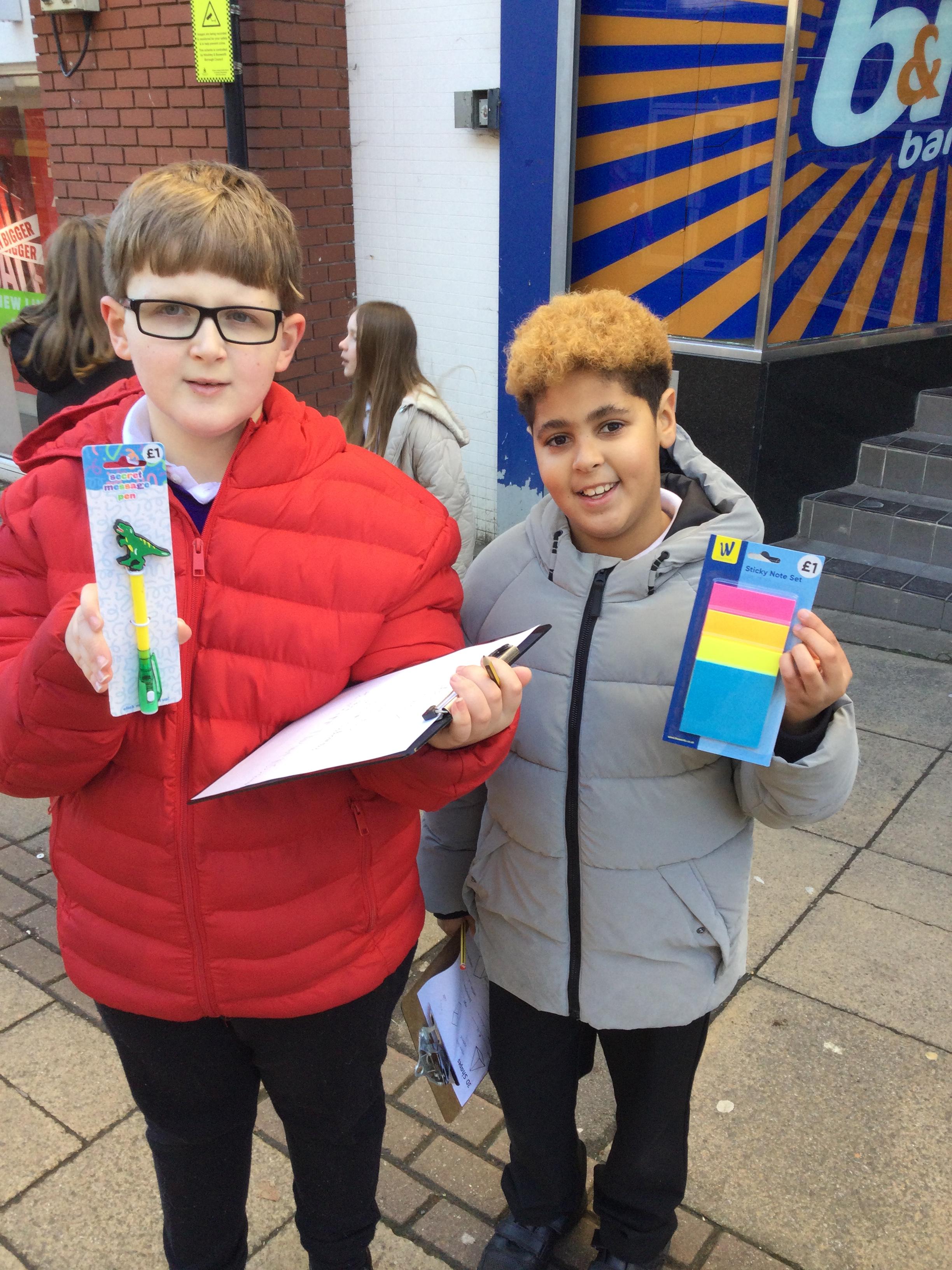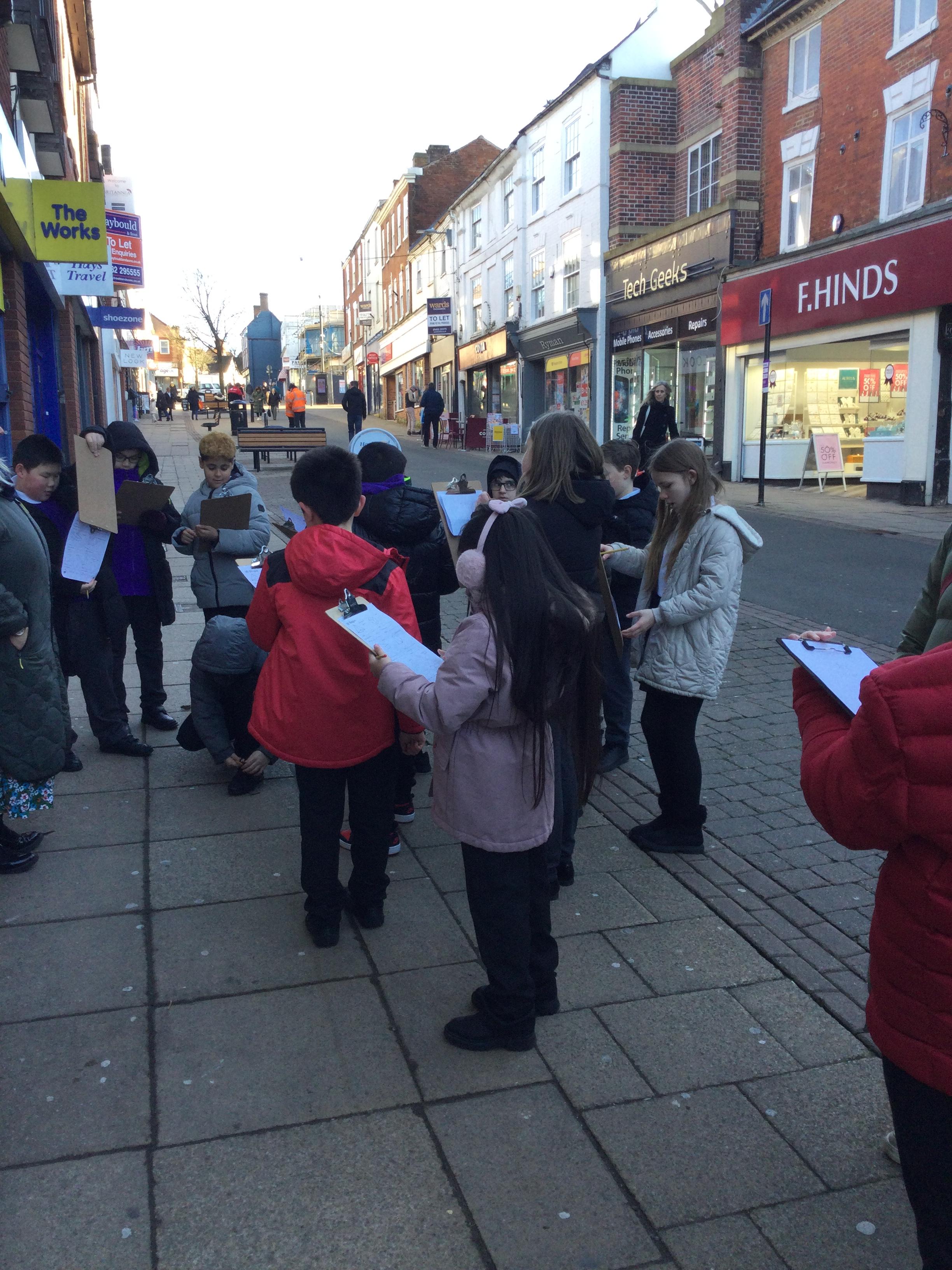 Some Year Five children were thinking about maths and how the subject came into all areas of Hinckley. We walked through the centre of Hinckley looking for evidence of maths around us. We found lots of examples from numbers and 3D shapes to percentages and money. Our favourite task was to think about how to spend one pound. We had great fun spending our money and discovered that maths was indeed all around us!