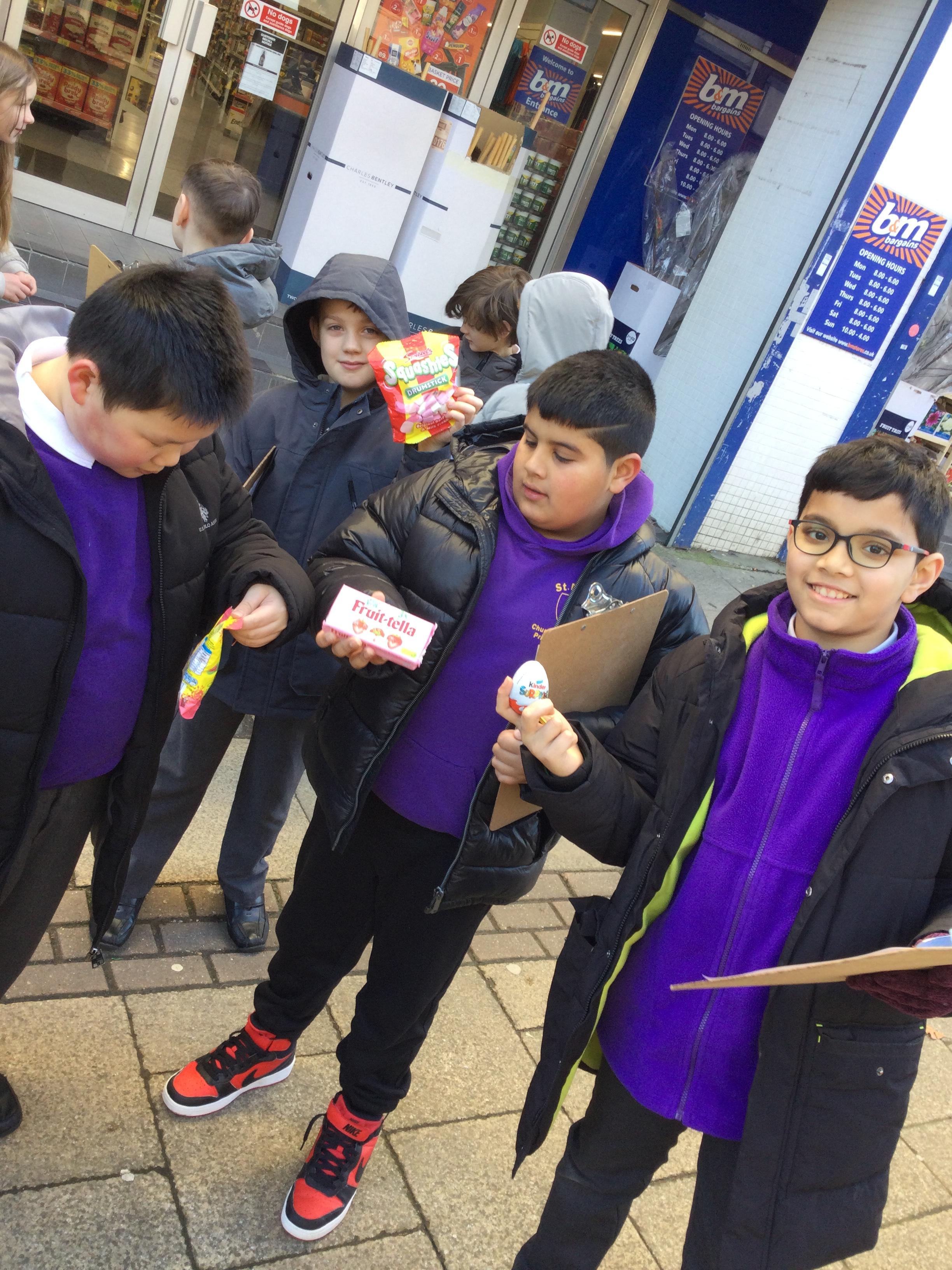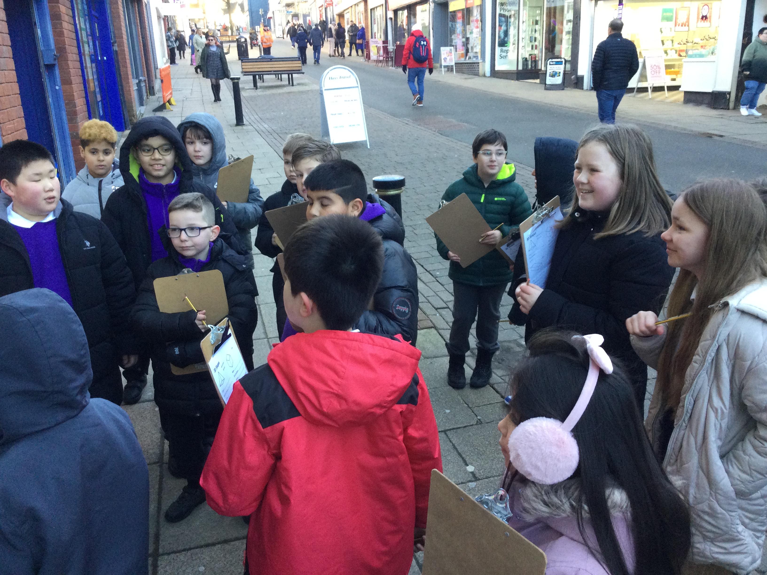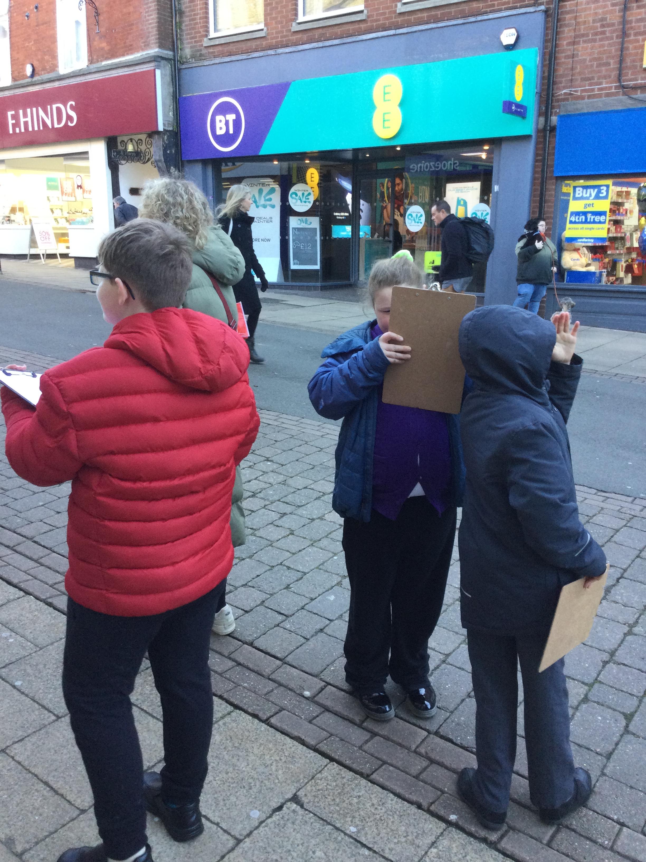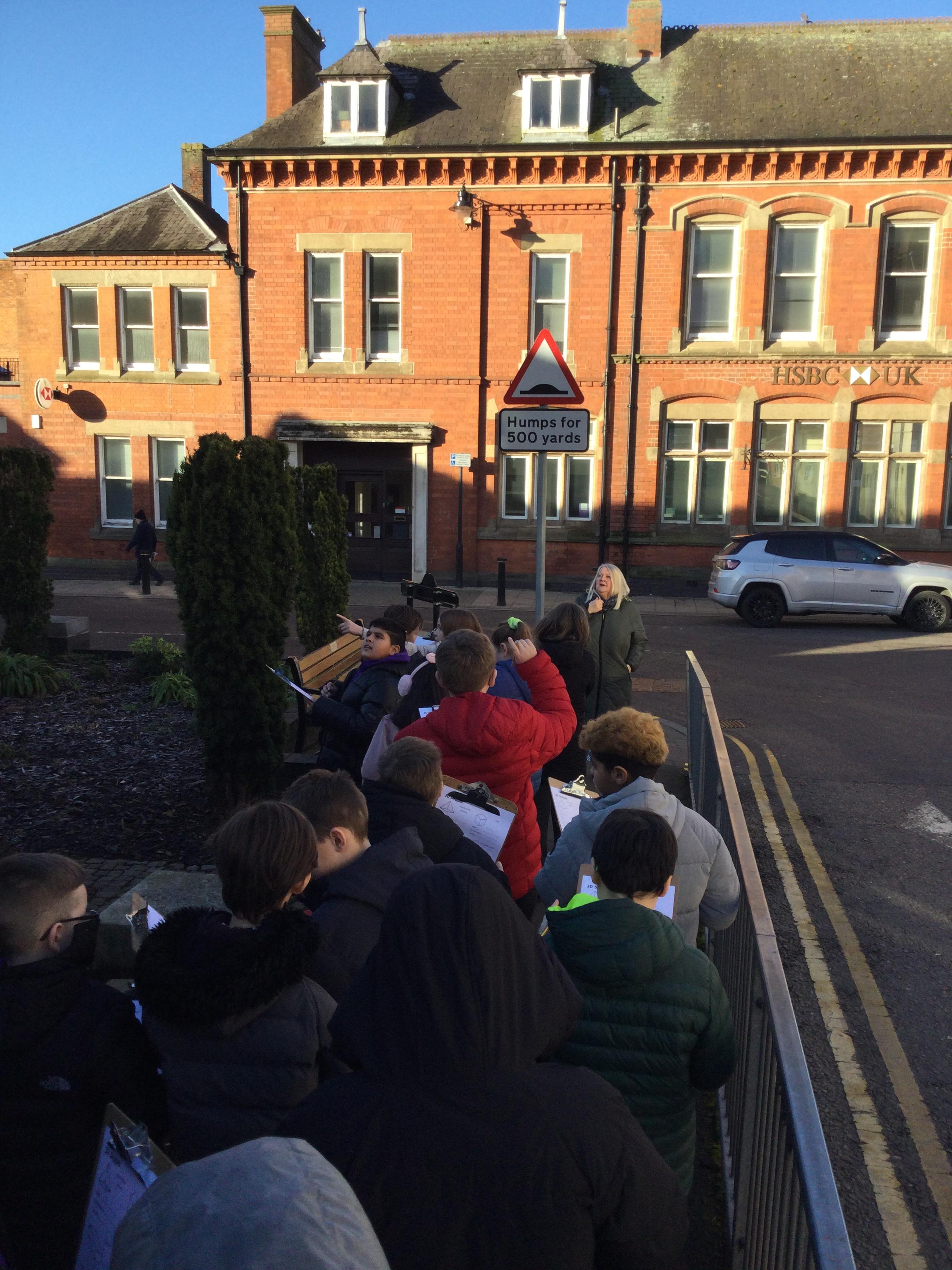 Some Year Five children were thinking about maths and how the subject came into all areas of Hinckley. We walked through the centre of Hinckley looking for evidence of maths around us. We found lots of examples from numbers and 3D shapes to percentages and money. Our favourite task was to think about how to spend one pound. We had great fun spending our money and discovered that maths was indeed all around us!