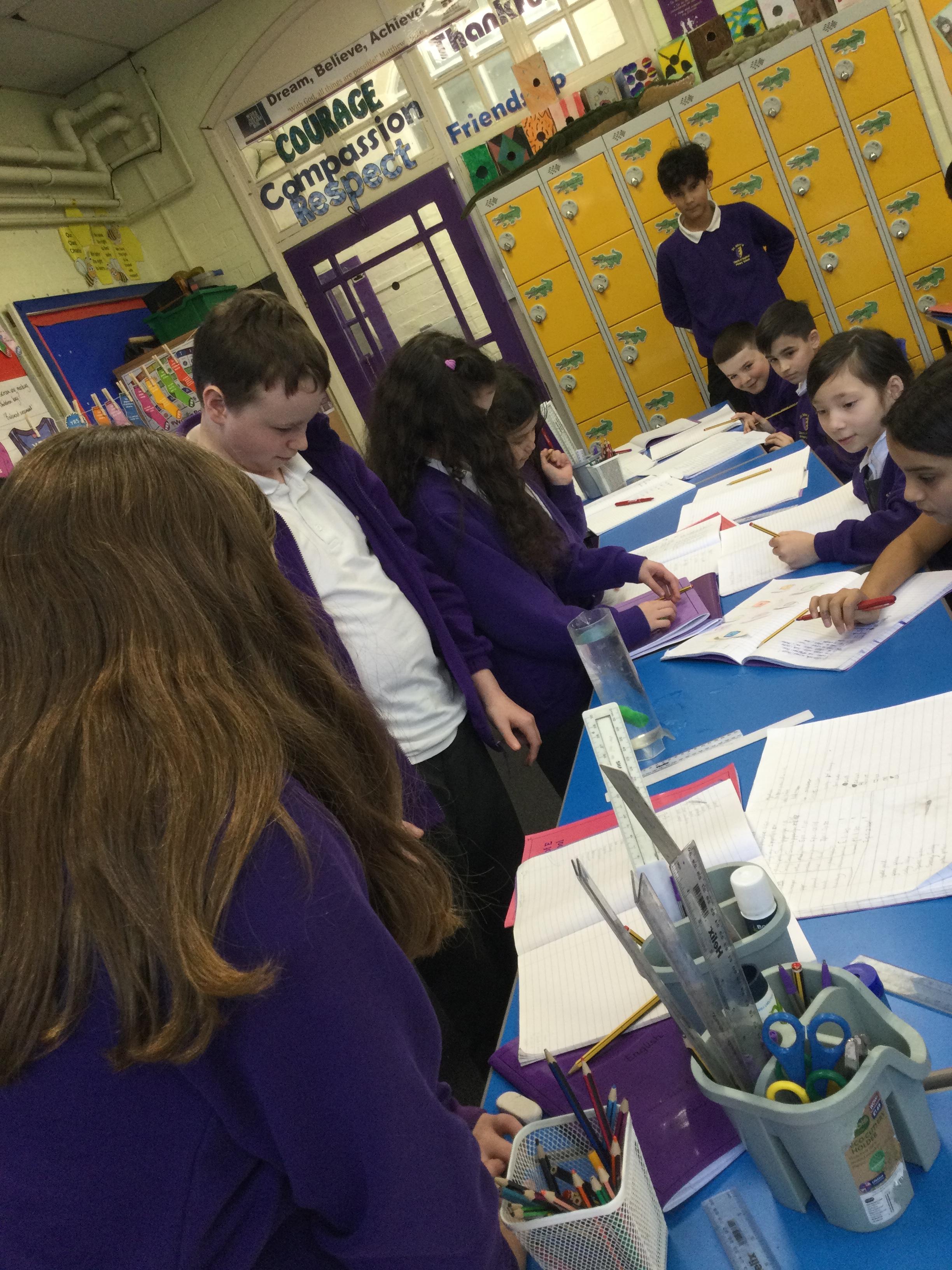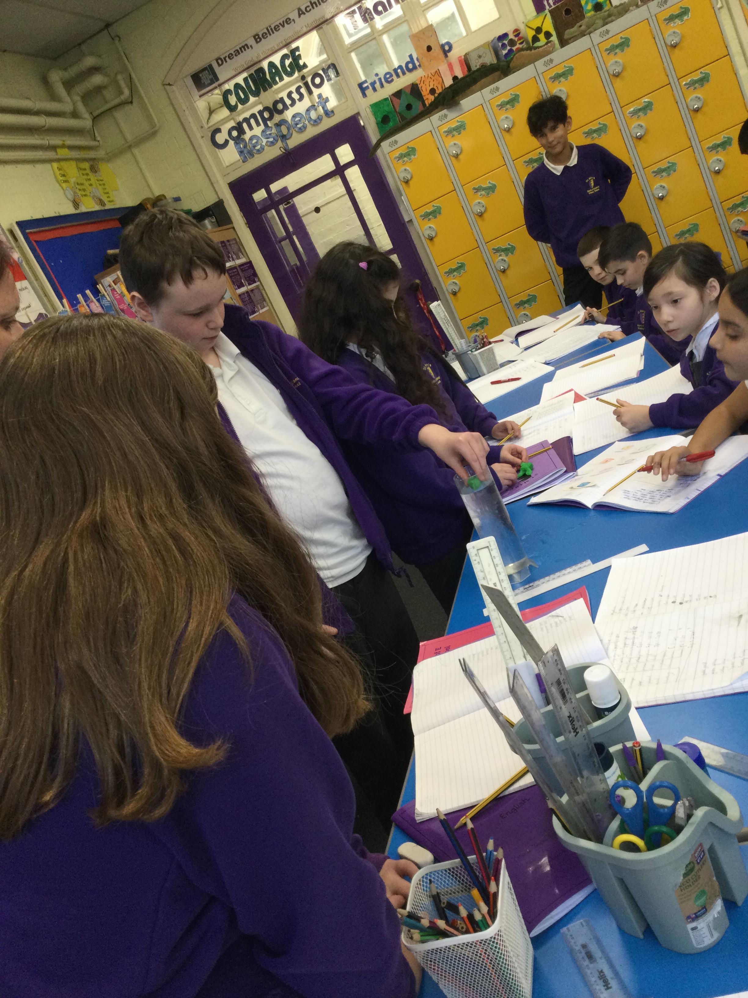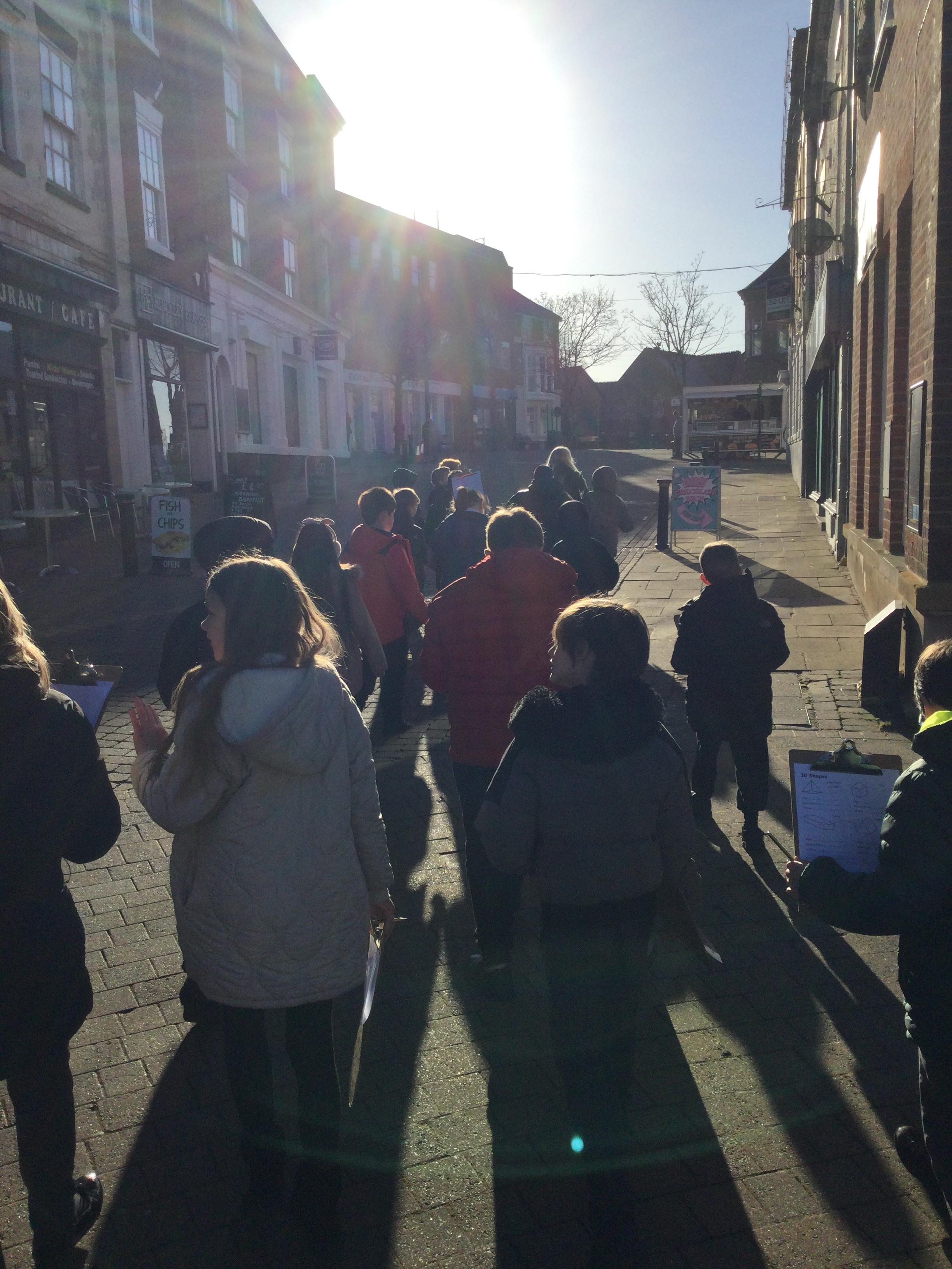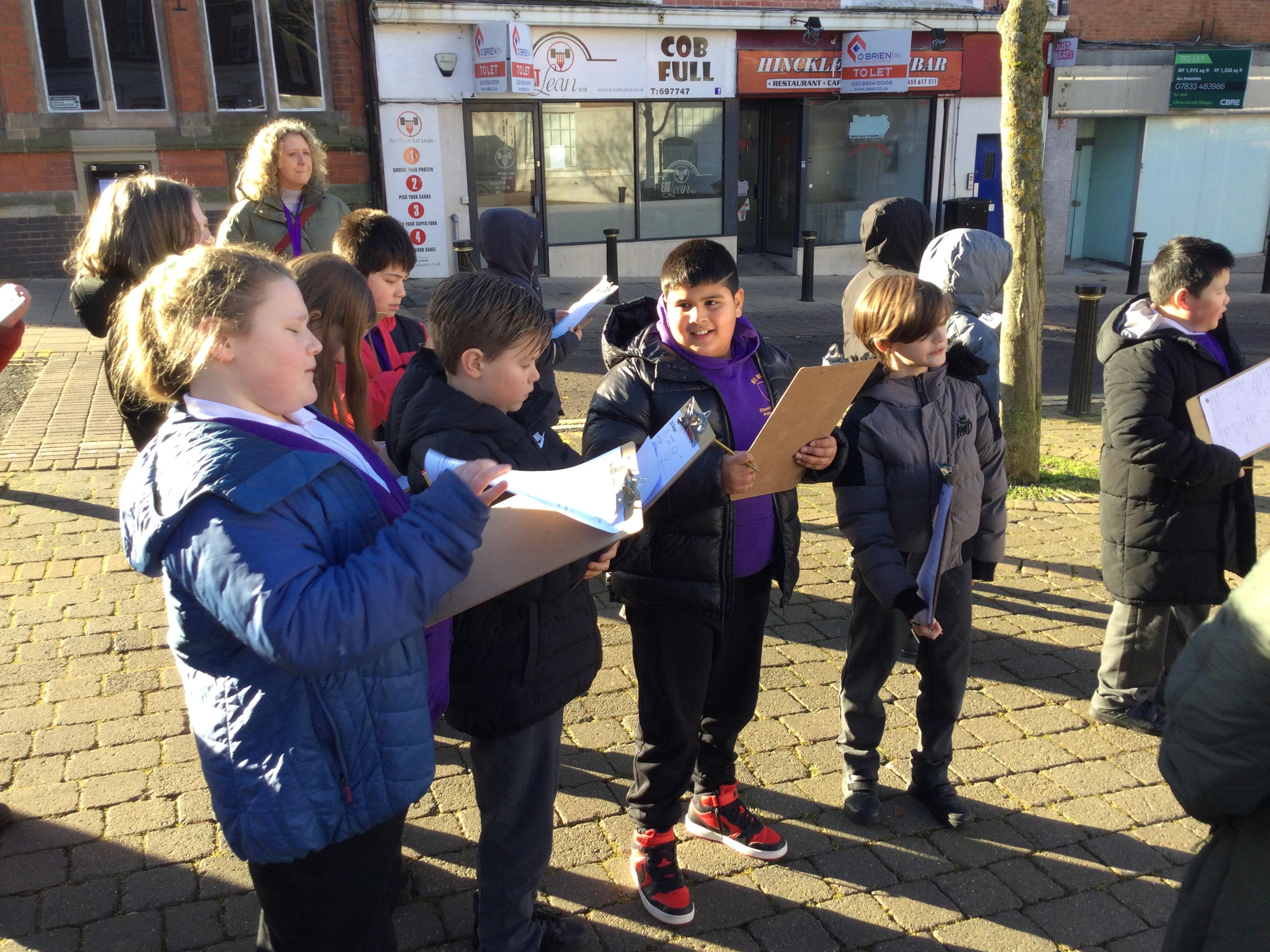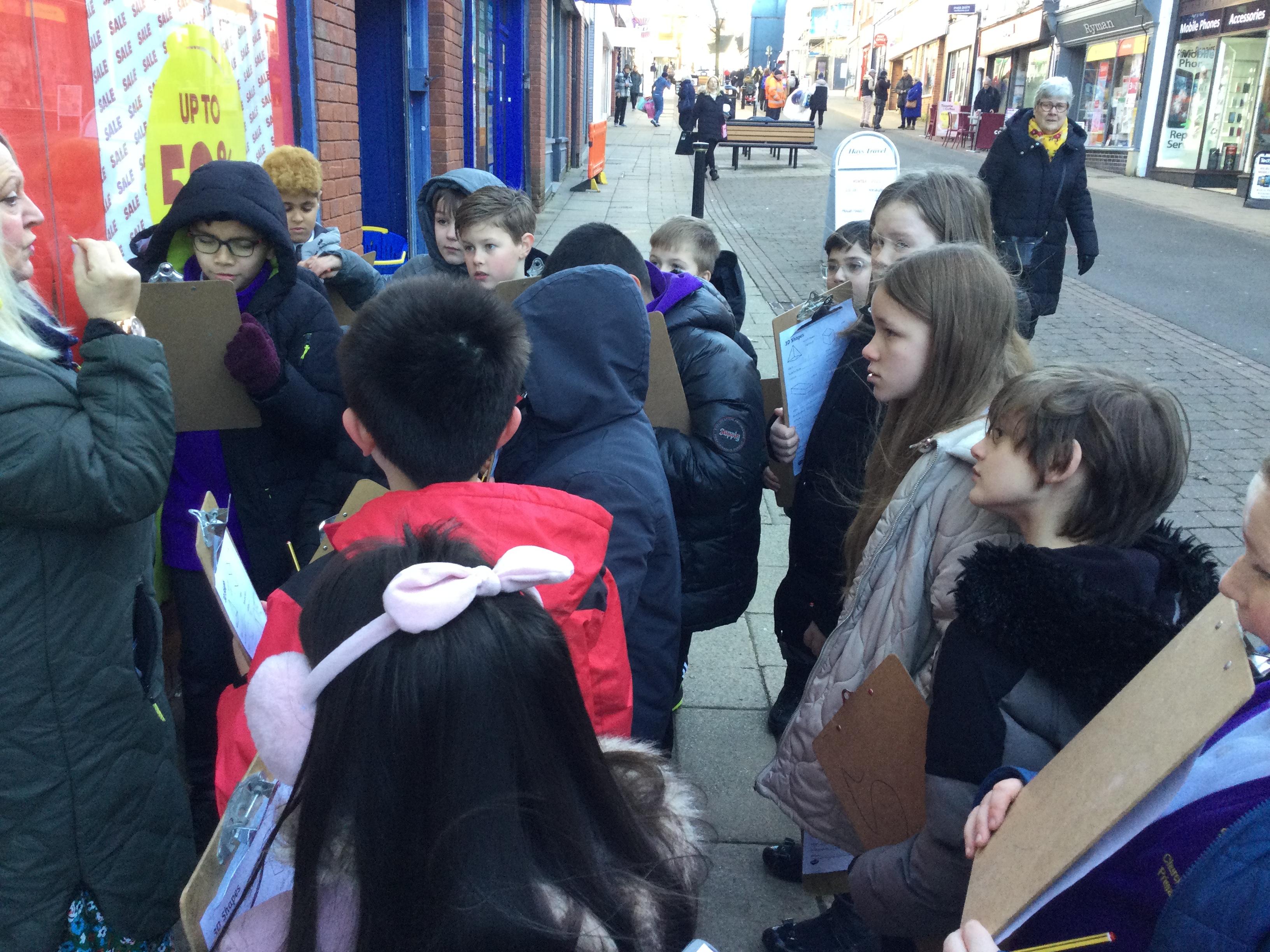 Some Year Five children were thinking about maths and how the subject came into all areas of Hinckley. We walked through the centre of Hinckley looking for evidence of maths around us. We found lots of examples from numbers and 3D shapes to percentages and money. Our favourite task was to think about how to spend one pound. We had great fun spending our money and discovered that maths was indeed all around us!